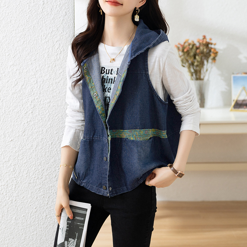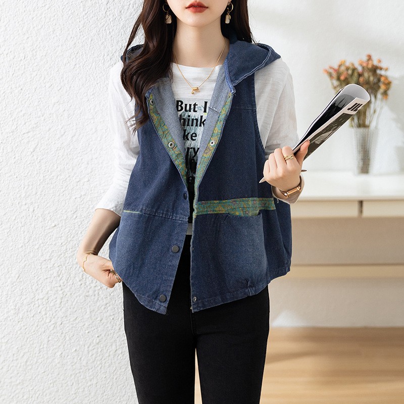 2024 Spring and Autumn new short Denim vest casual loose fashion