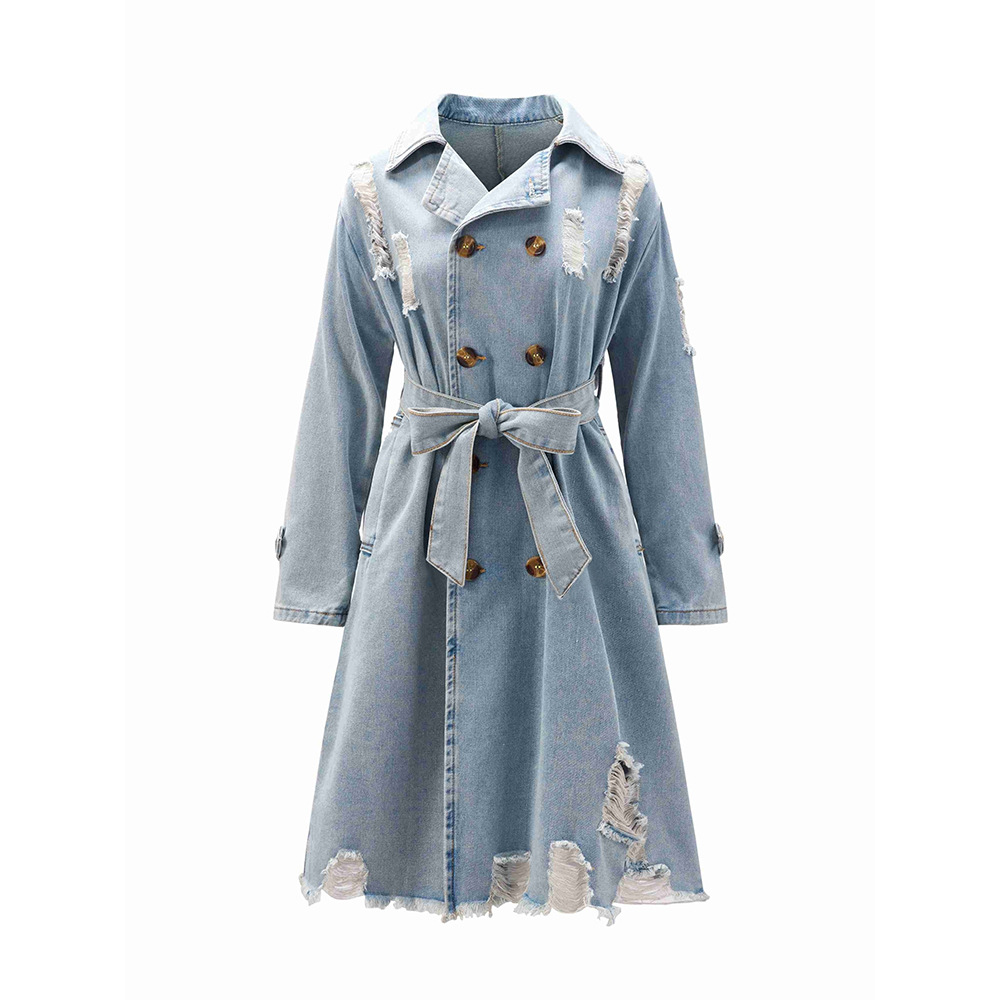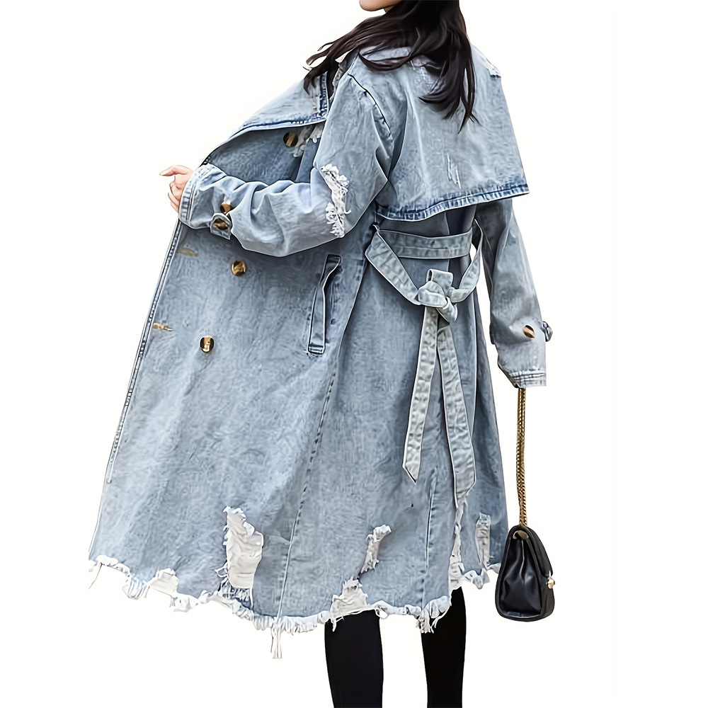 | nameOriginal | 2024 Spring and Autumn new spring and Hong Kong style retro Denim trench coat Women's Mid-length over-the-knee waist-tight temperament |
