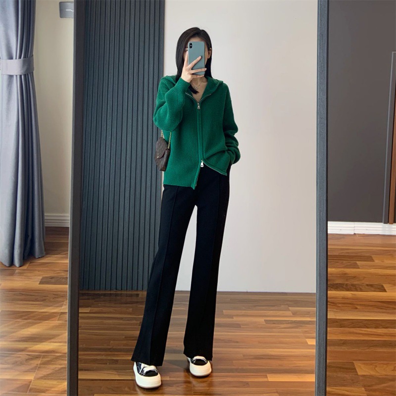 2024 Spring and Autumn plus size Women’s Casual Pants Cover Meat and Look Thin and Slight Side Slit Small Black Pants Pear-shaped Pants Women