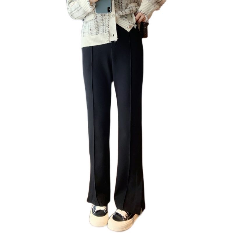2024 Spring and Autumn plus size Women's Casual Pants Cover Meat and Look Thin and Slight Side Slit Small Black Pants Pear-shaped Pants Women