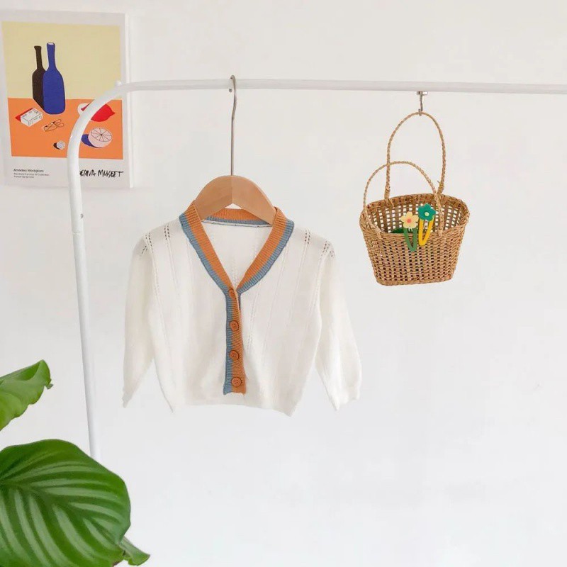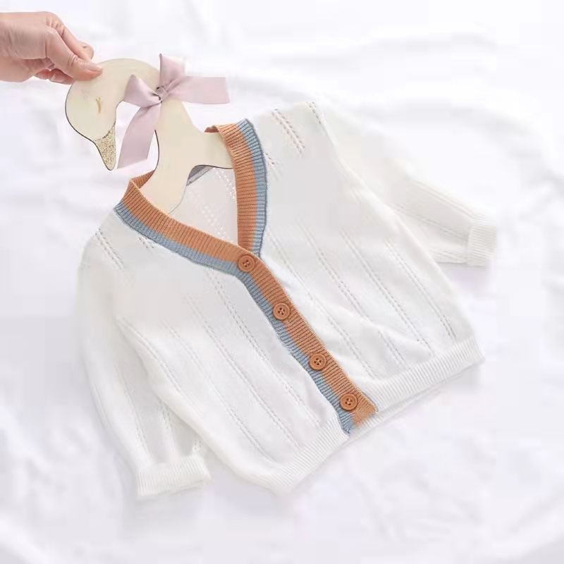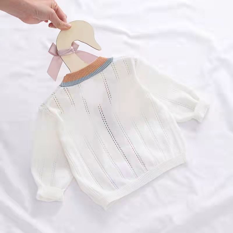 | nameOriginal | 2024 spring and summer baby boys and girls contrast hollow cardigan baby sunscreen air conditioning shirt long sleeve knitted thin coat |