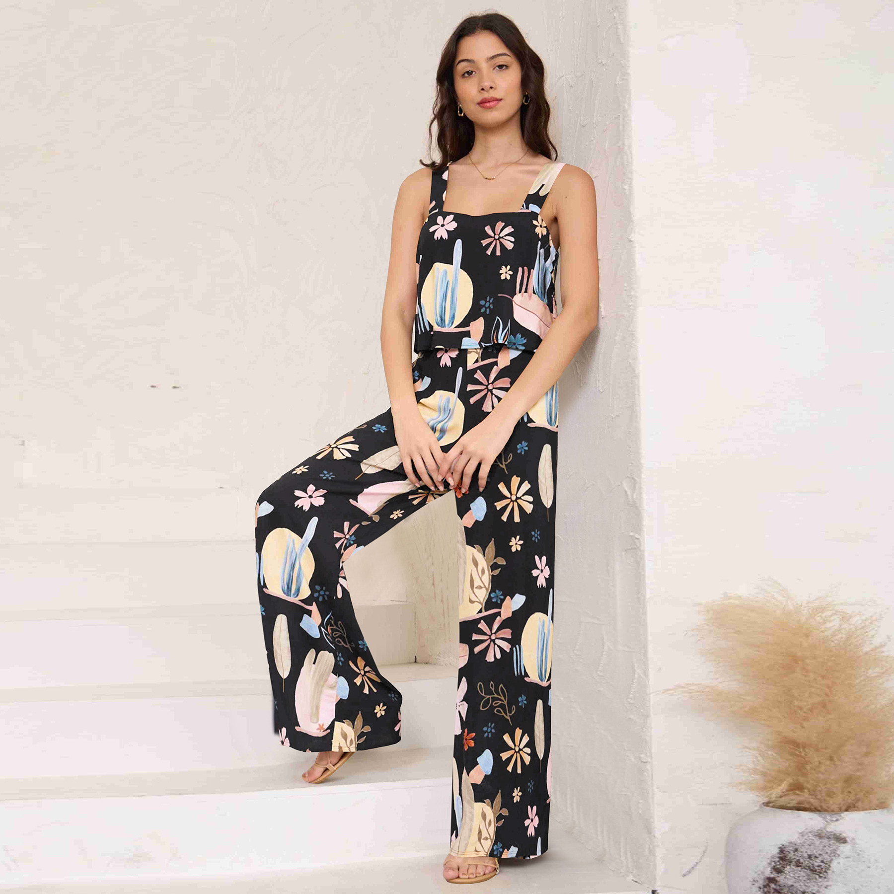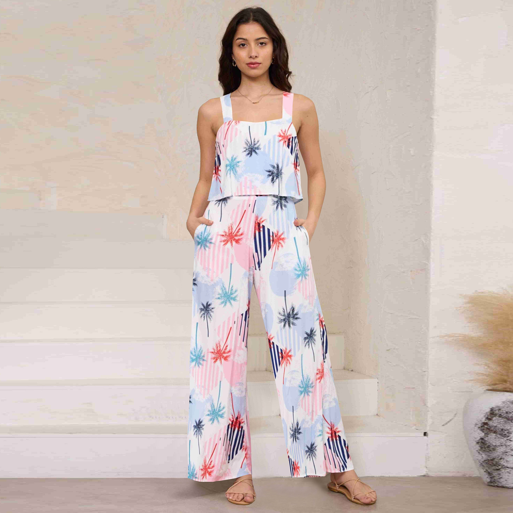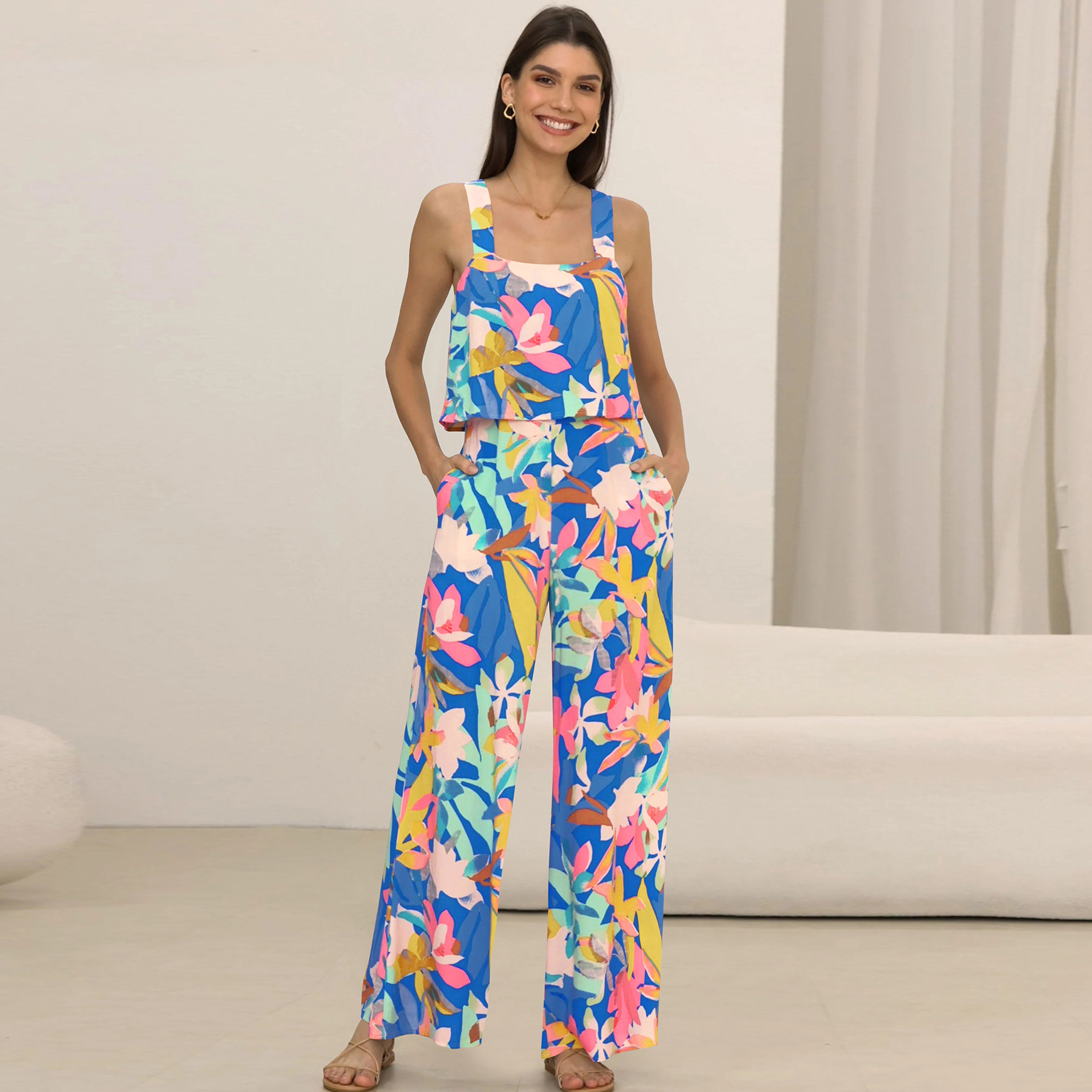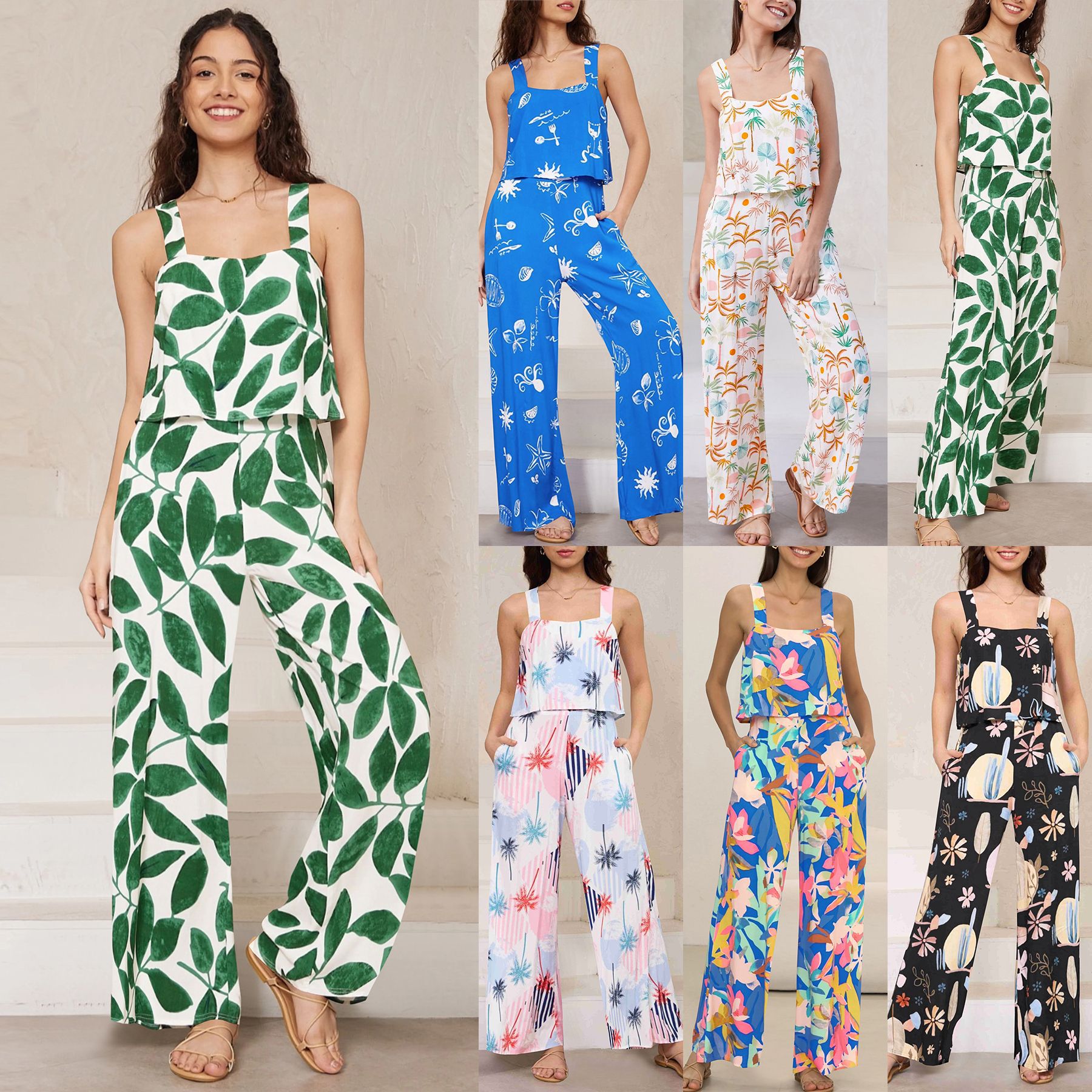 2024 Spring and Summer Cross-border Foreign Trade New Sling Printed Wide-leg Straight Pants Fashion Casual European and American Women’s Clothing