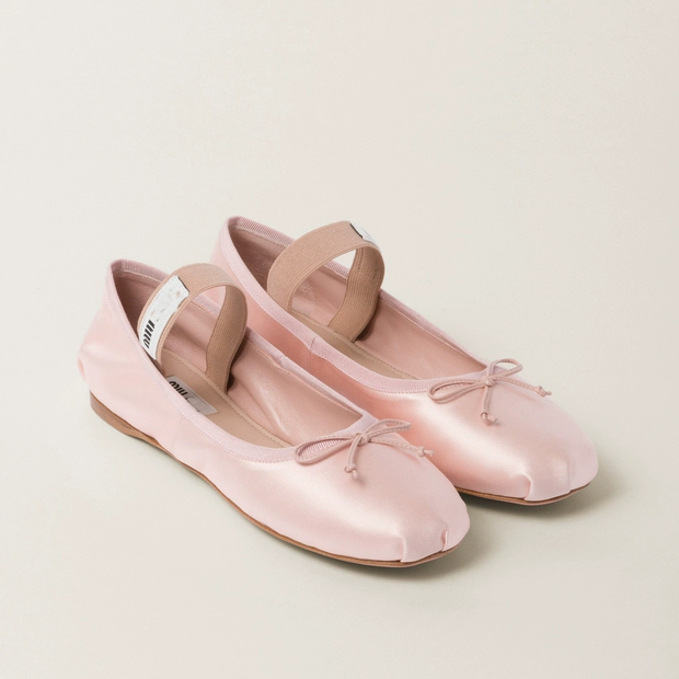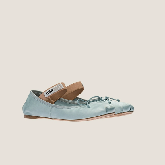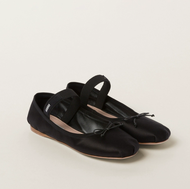 2024 spring and summer genuine leather miu mary jane shoes satin ballet shoes bow single shoes women round toe flat shoes women