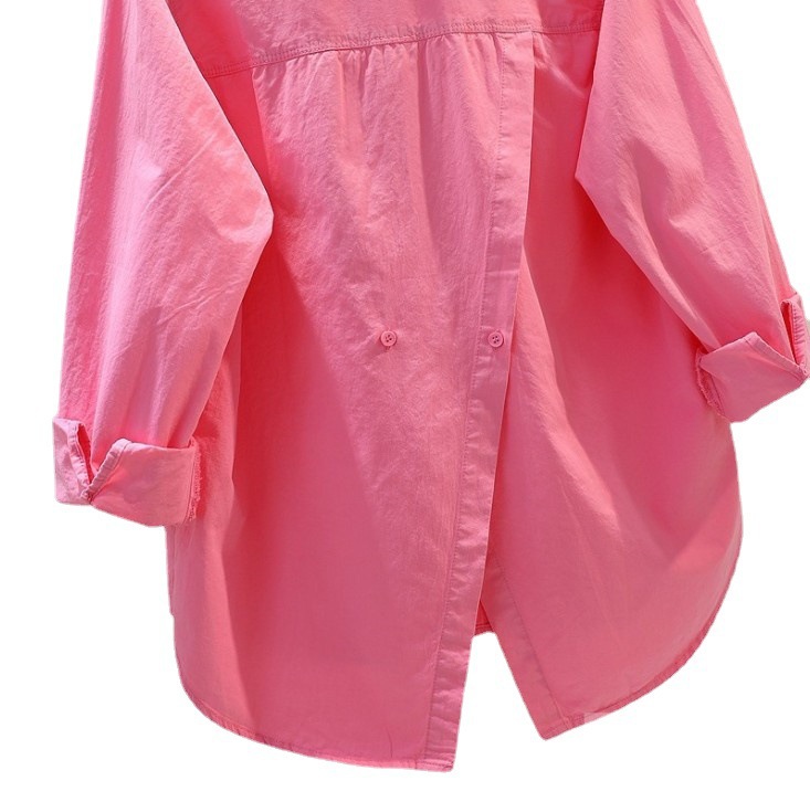 | nameOriginal | 2024 spring and summer Korean style design back split rose pink trendy loose lapel long sleeve all-match cardigan shirt for women |