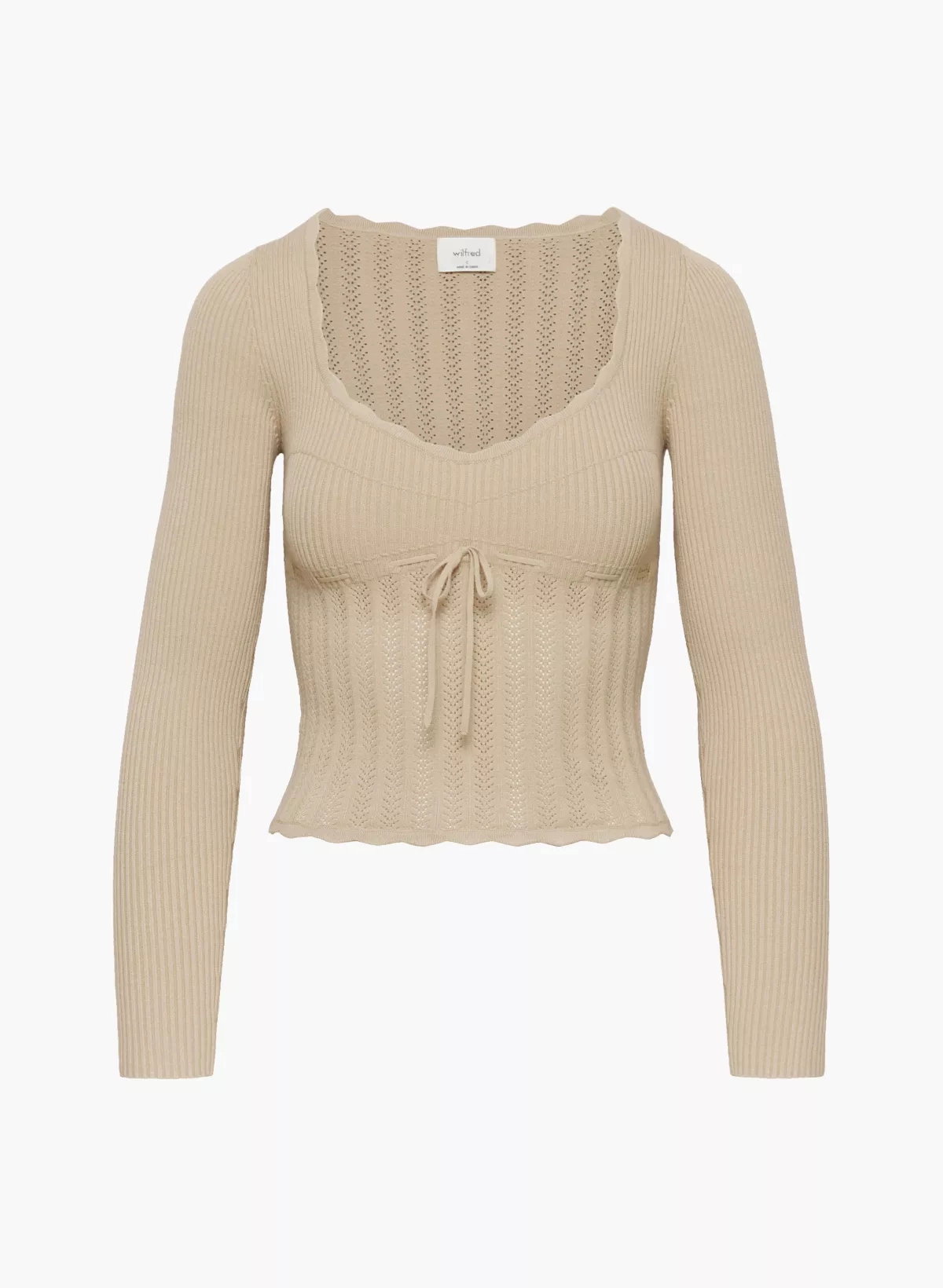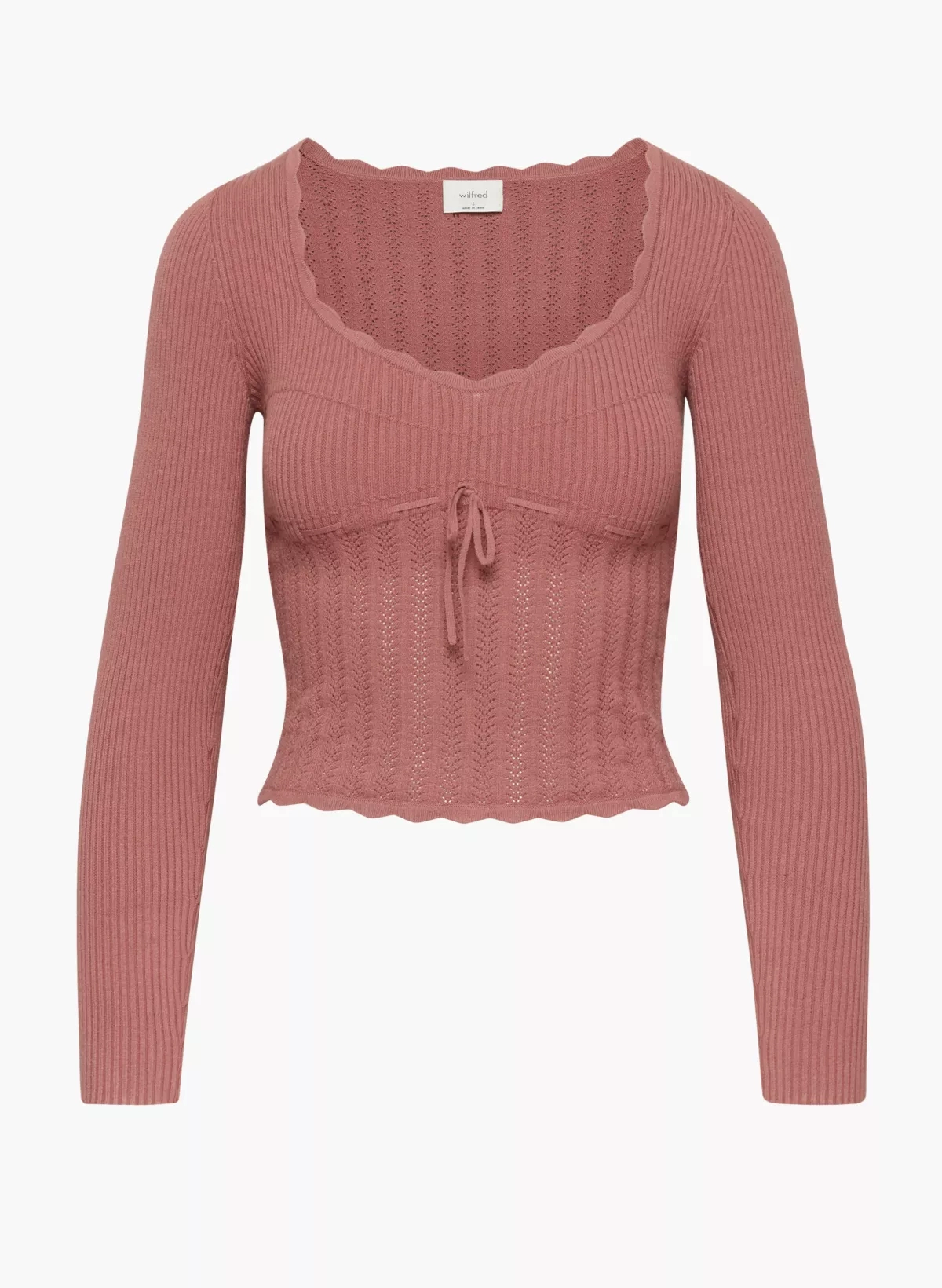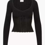 2024 spring and summer new Aritzia105332U collar hollow lace crochet waist reduction age sweet knitted pullover for women