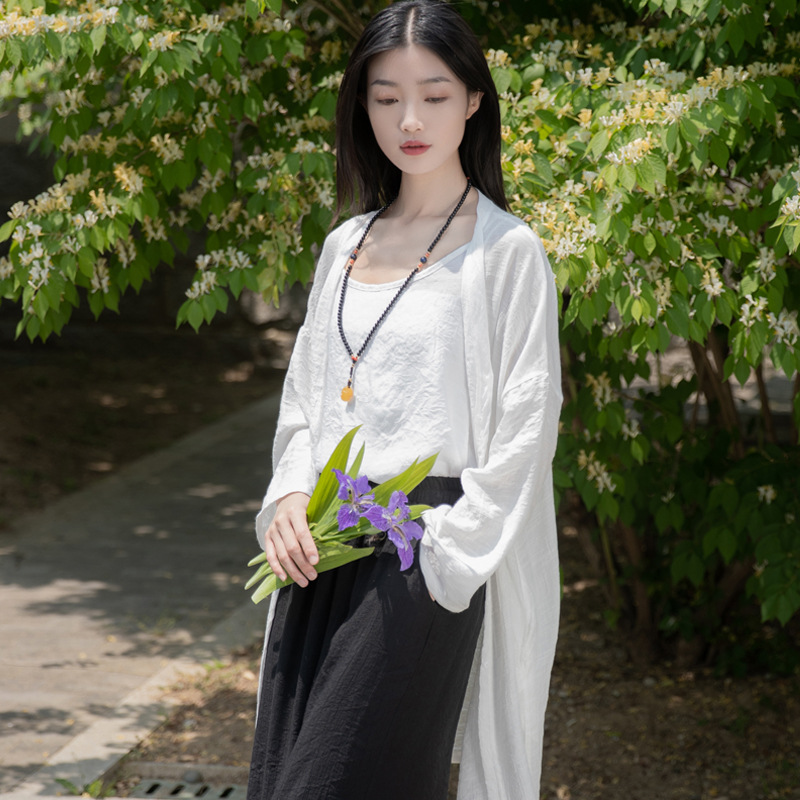 2024 Spring and Summer New Artistic Solid Color All-match Bamboo Air-conditioning Shirt Women’s Outer Sunscreen Cardigan