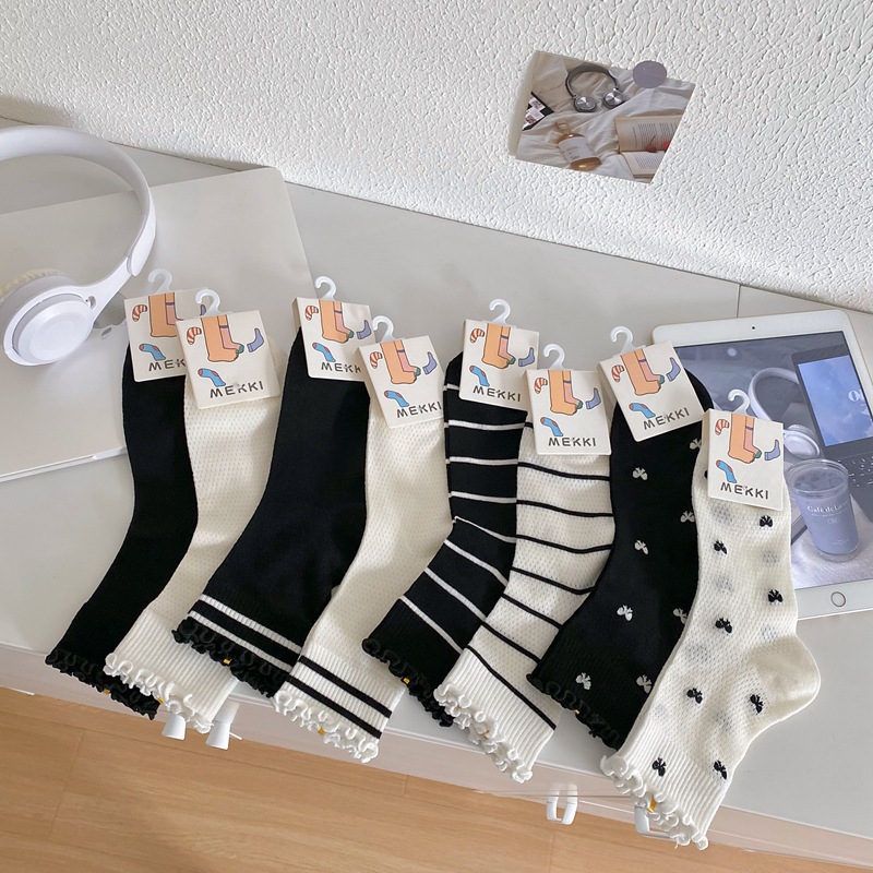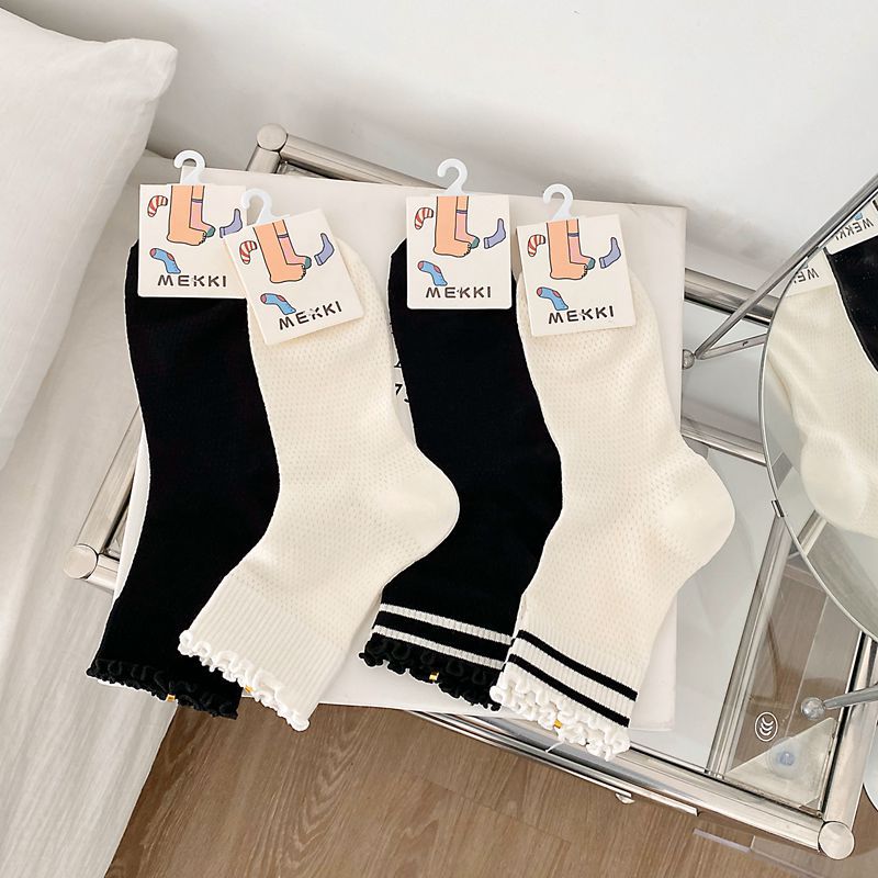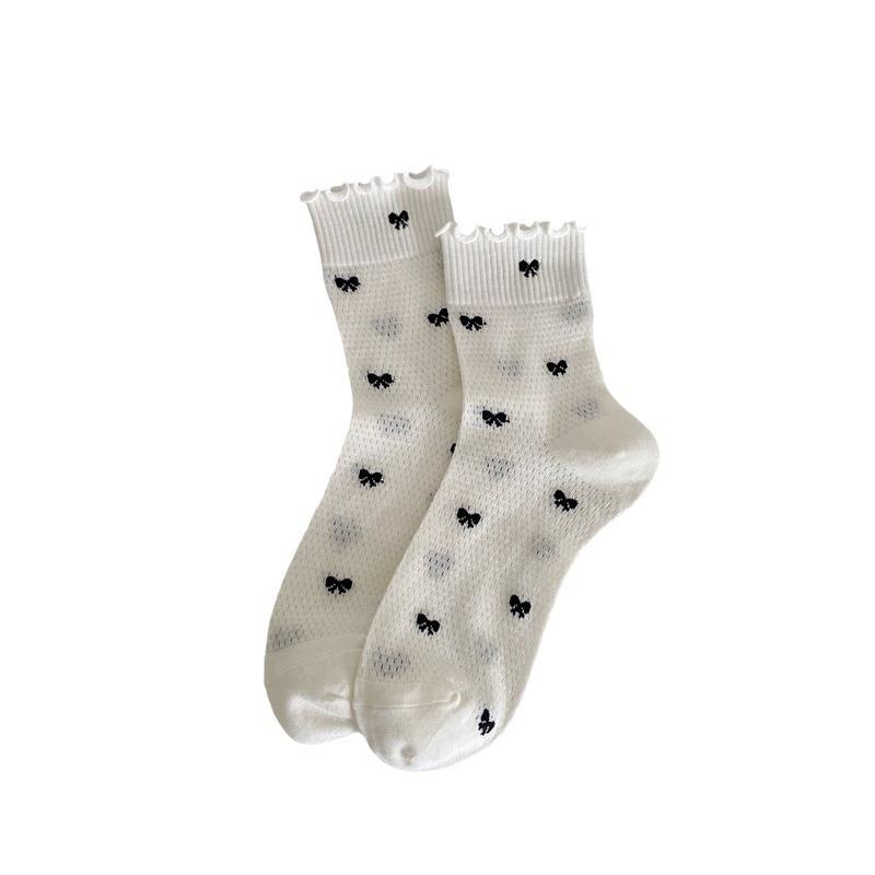 | nameOriginal | 2024 spring and summer new bamboo fiber wooden ear small bow ins girls' socks wholesale simple black and white women's socks |