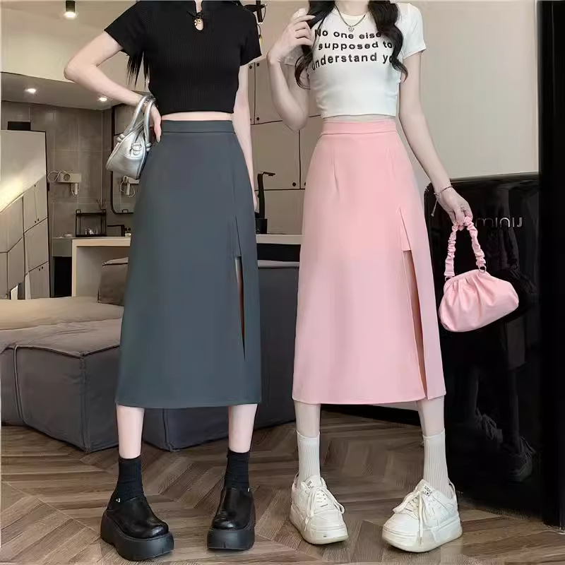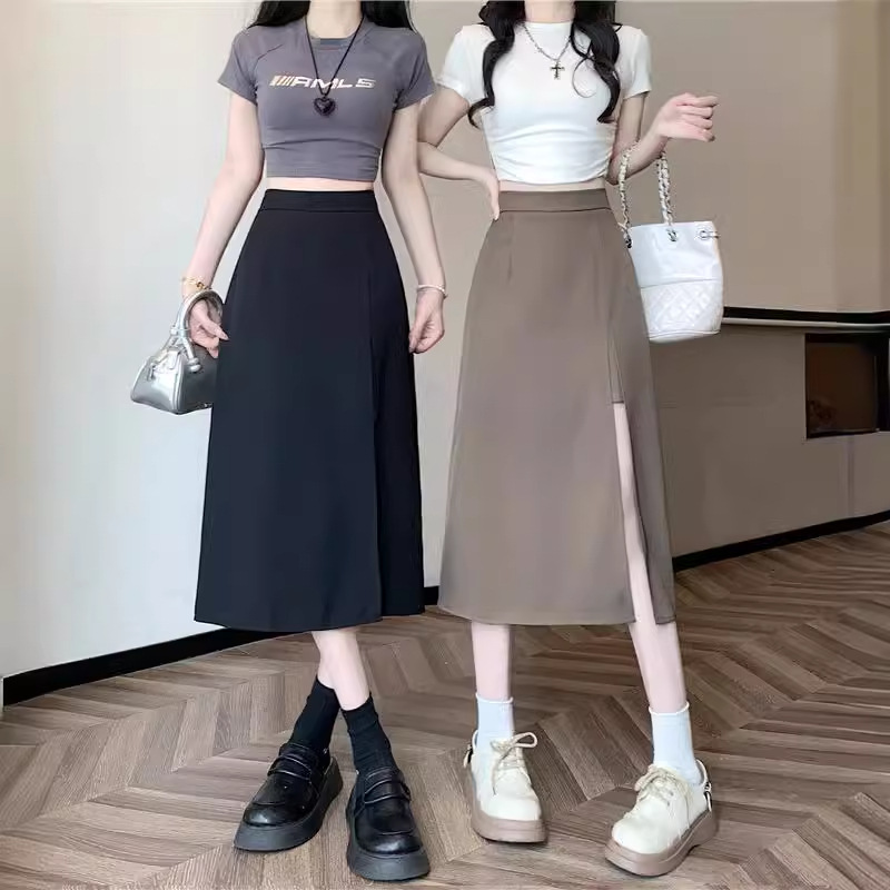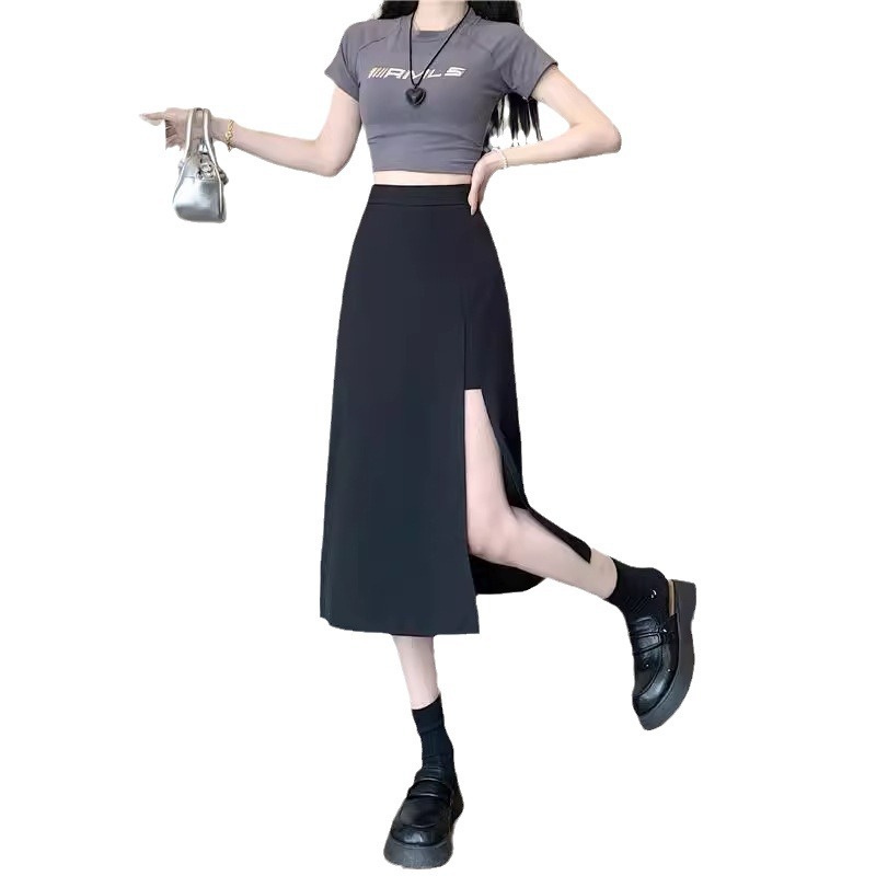| nameOriginal | 2024 Spring and Summer New Black High Waist A- Shaped Long Hip Covering Split Anti-Glow Slimming Half-length Dress for Women |