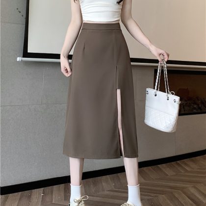 | nameOriginal | 2024 Spring and Summer New Black High Waist A- Shaped Long Hip Covering Split Anti-Glow Slimming Half-length Dress for Women |