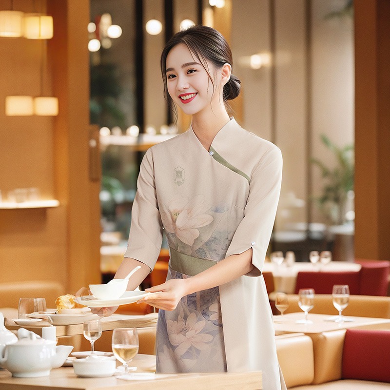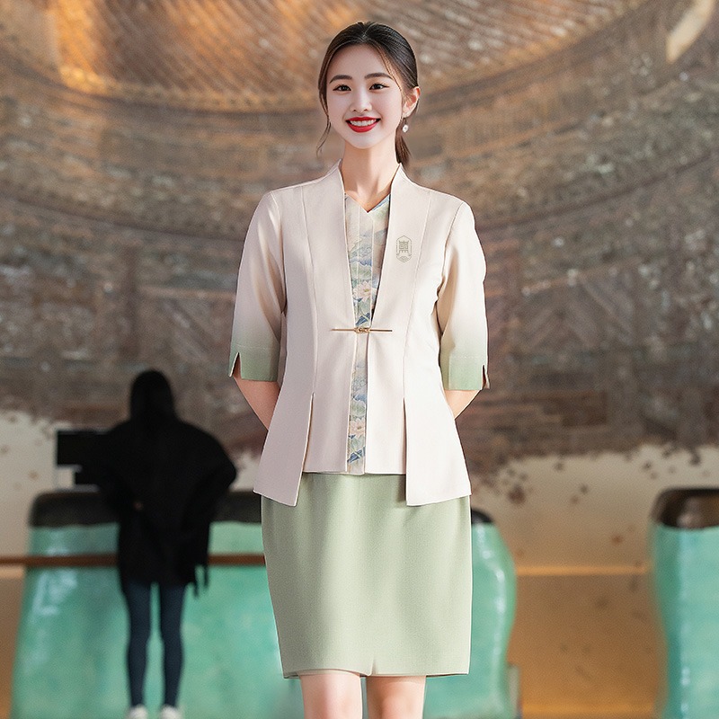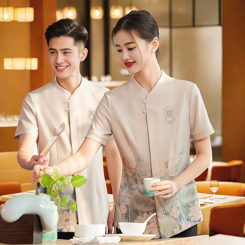 | nameOriginal | 2024 spring and summer new catering hotel Hotel full position star waiter work clothes Chinese short sleeve women's work clothes |
