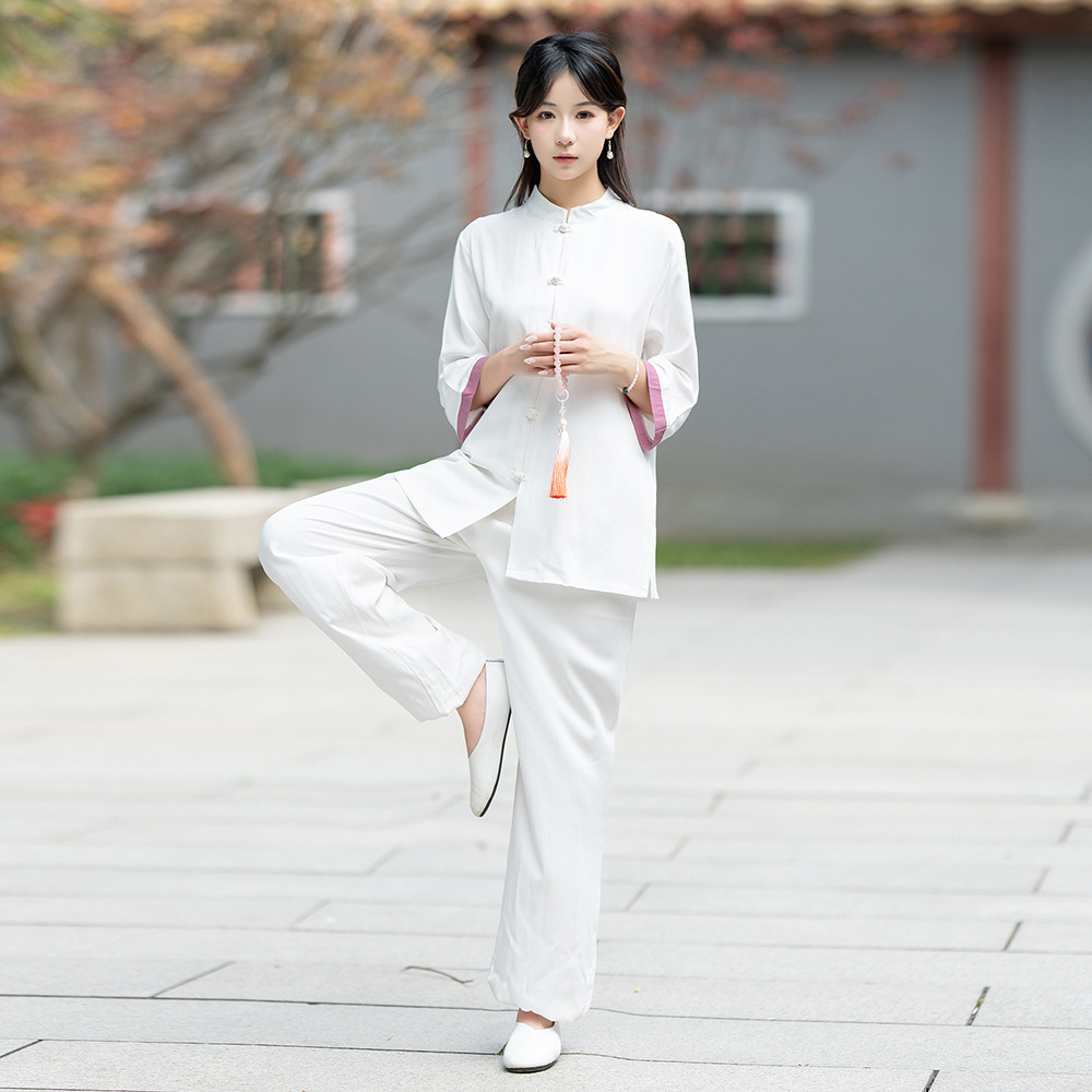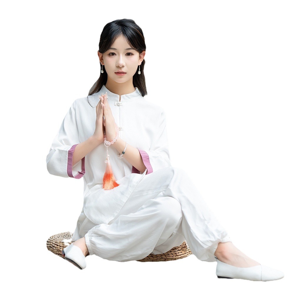 2024 spring and summer new Chinese retro collar Zen tea suit suit Tai Chi suit morning practice national wind yoga dress female