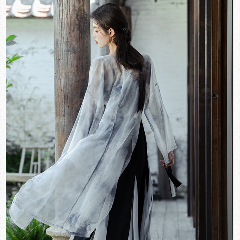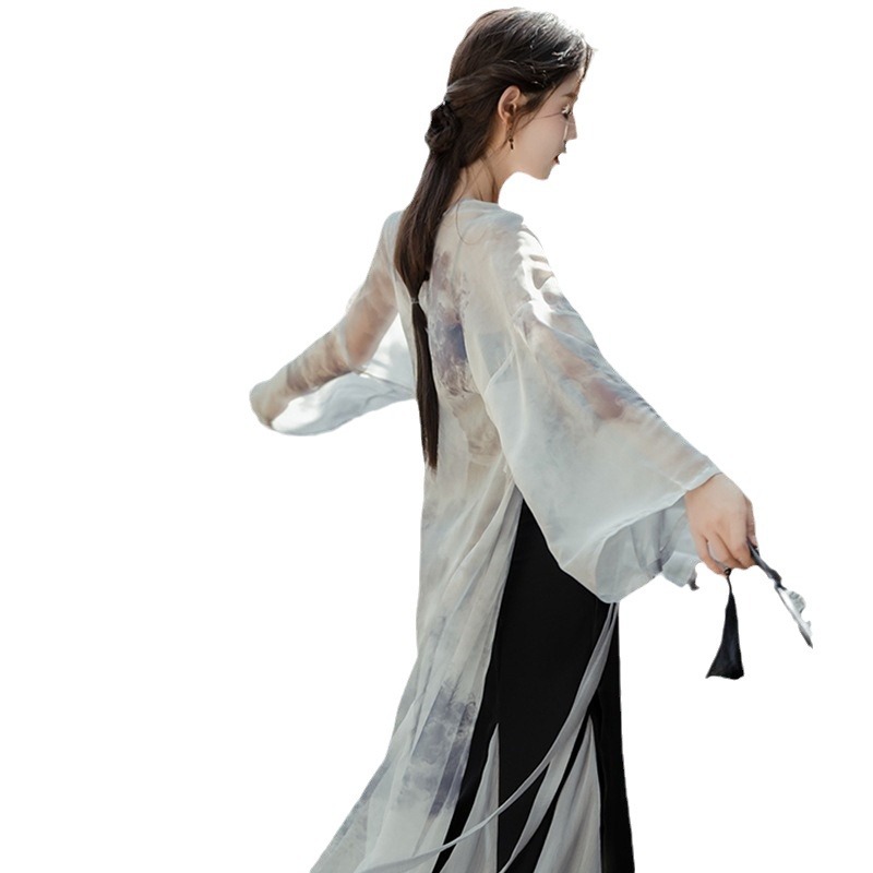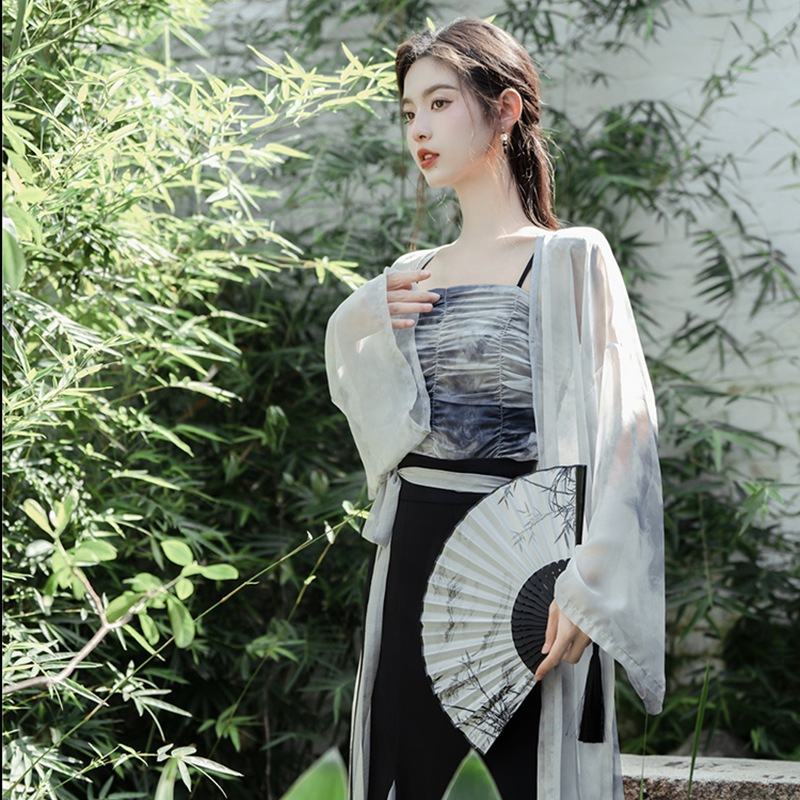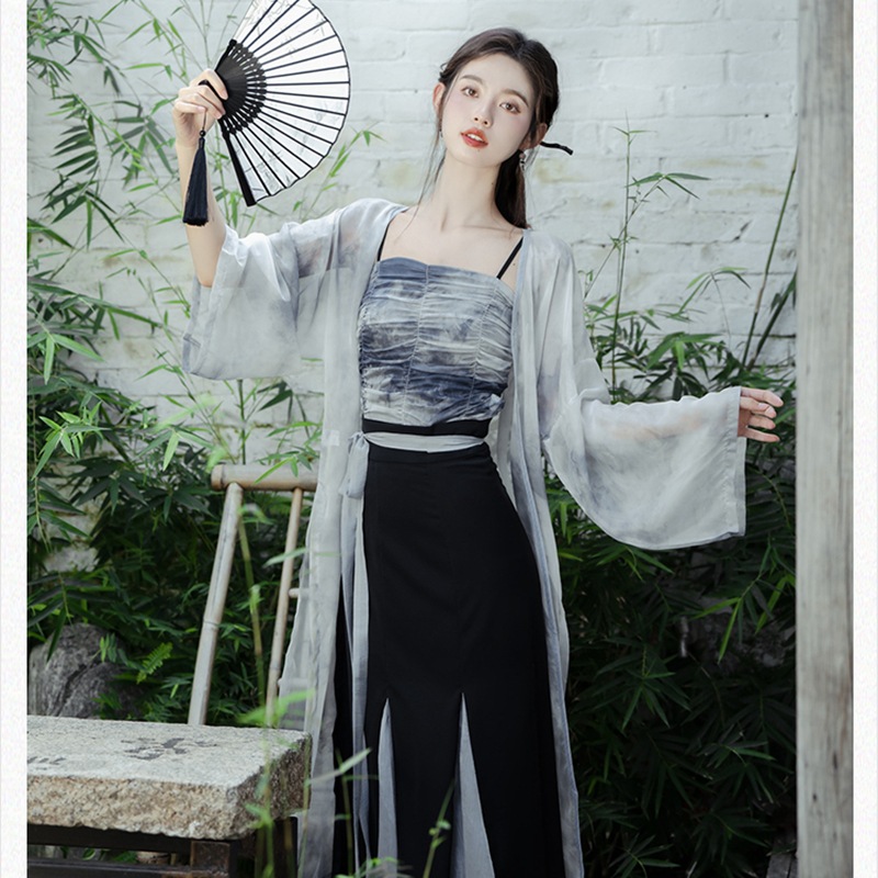 | nameOriginal | 2024 spring and summer new Chinese style improved ink painting Hanfu long shirt + sling + fishtail multi-tube skirt three-piece suit |