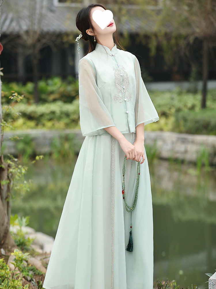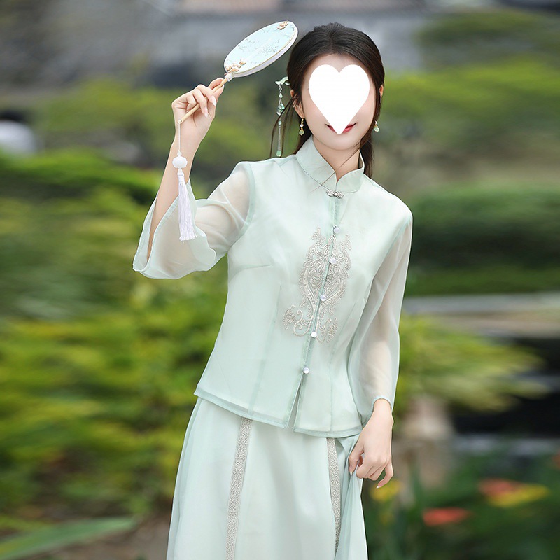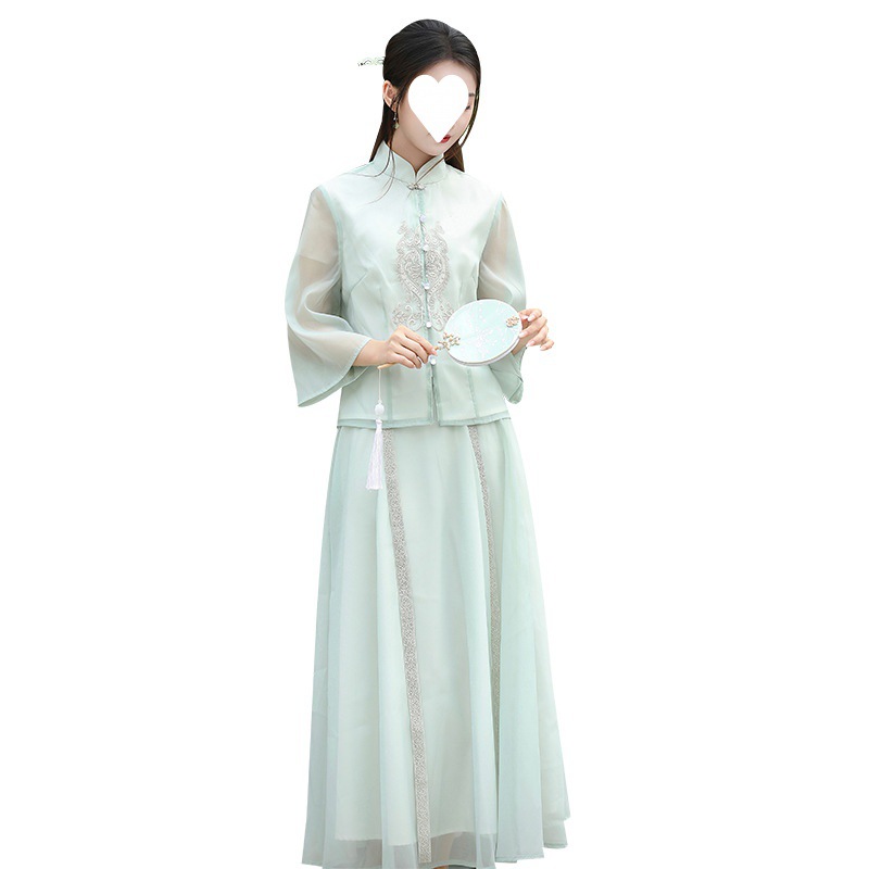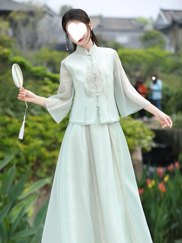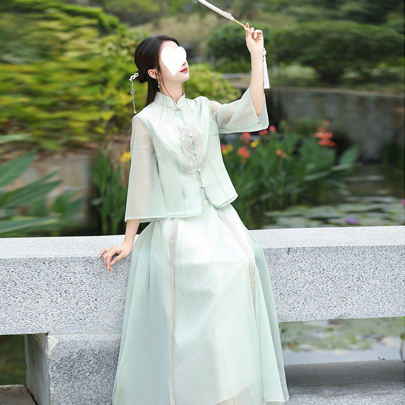 2024 Spring and Summer New Chinese Zen Embroidery Improved Hanfu Two-piece National Style Tea Clothes Top Half Skirt Women