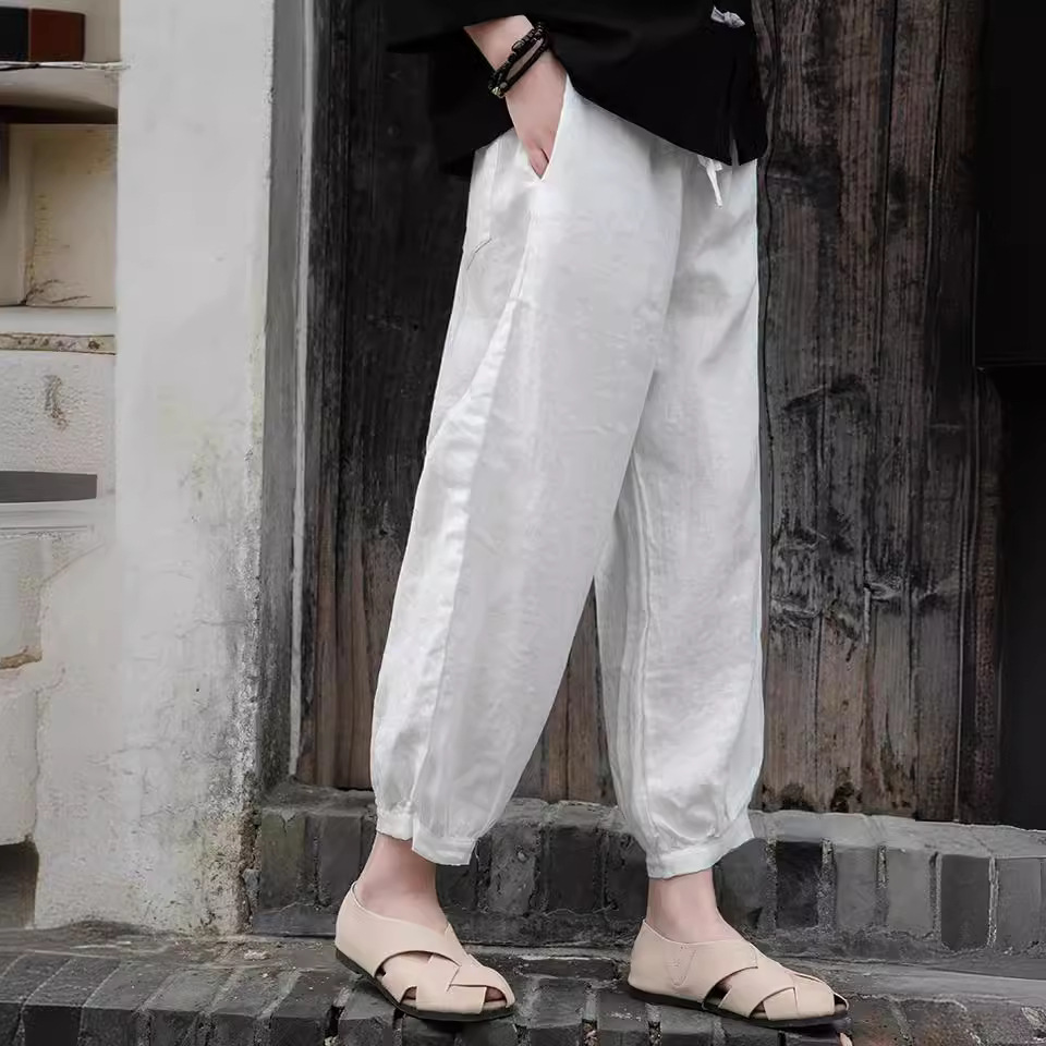 | nameOriginal | 2024 spring and summer new cotton and linen women's clothing artistic retro loose casual linen women's pants elastic waist cropped bloomers |