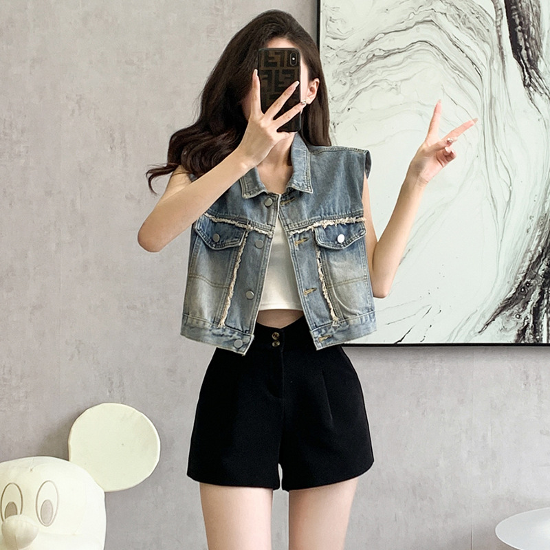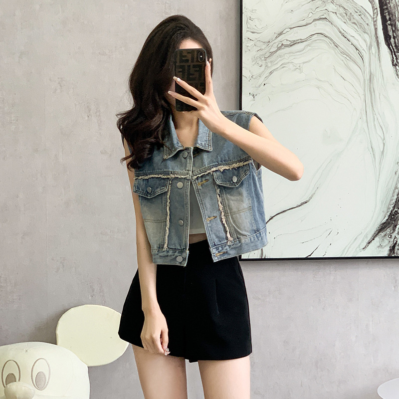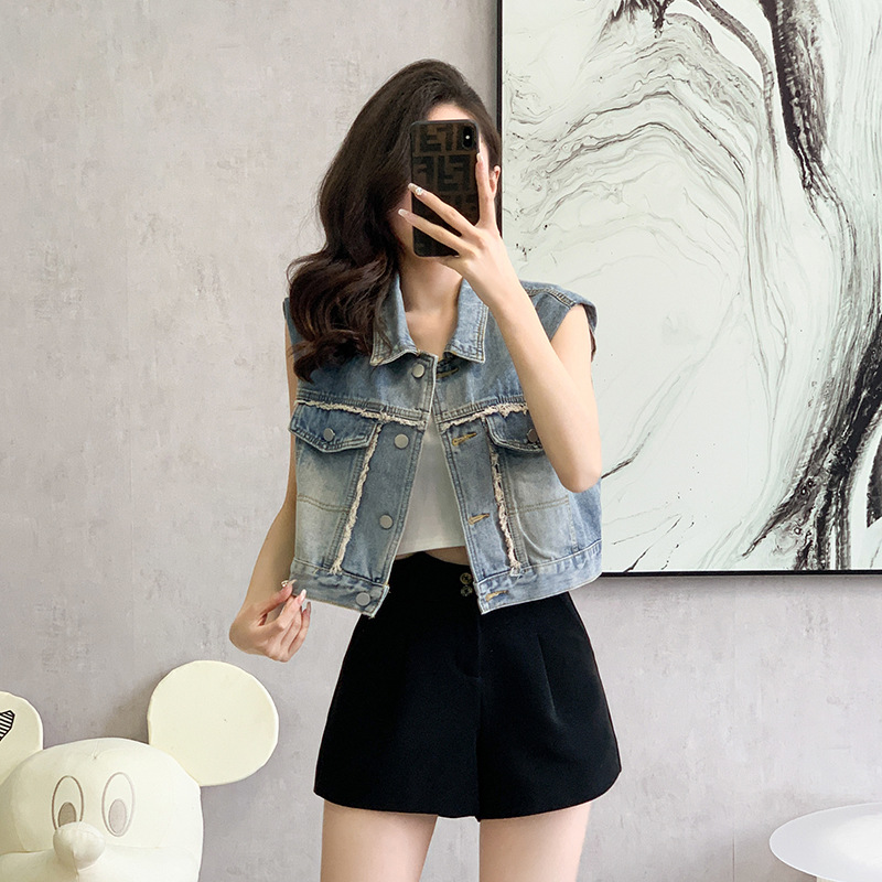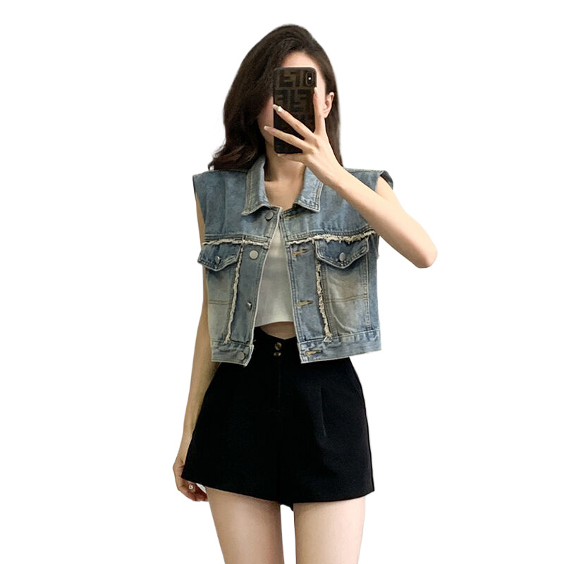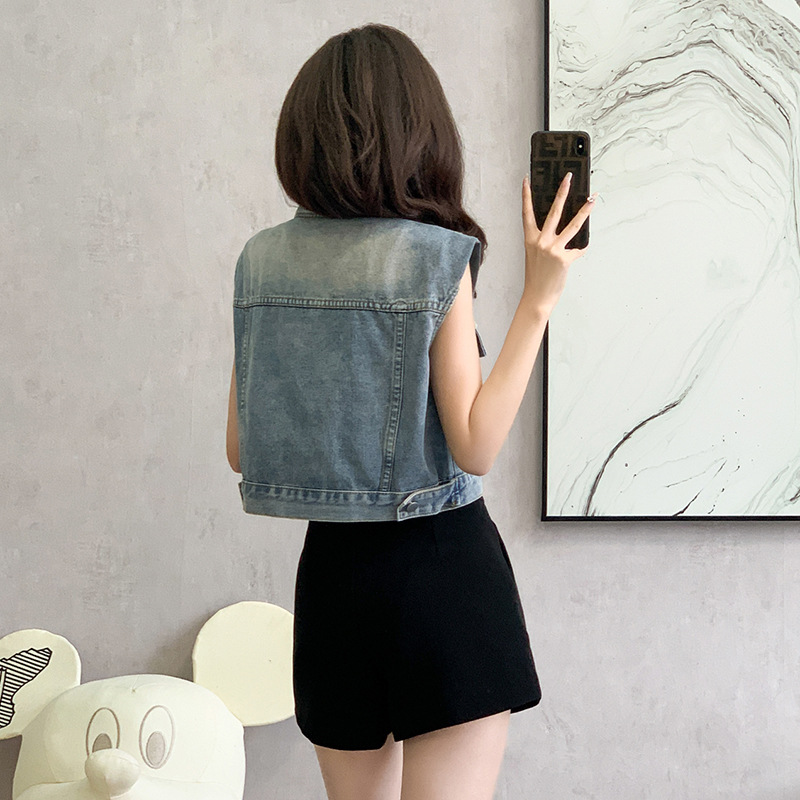 2024 spring and summer new Denim coat sleeveless top vest versatile small top