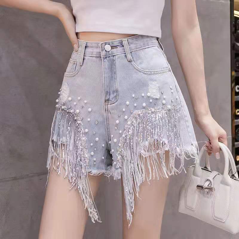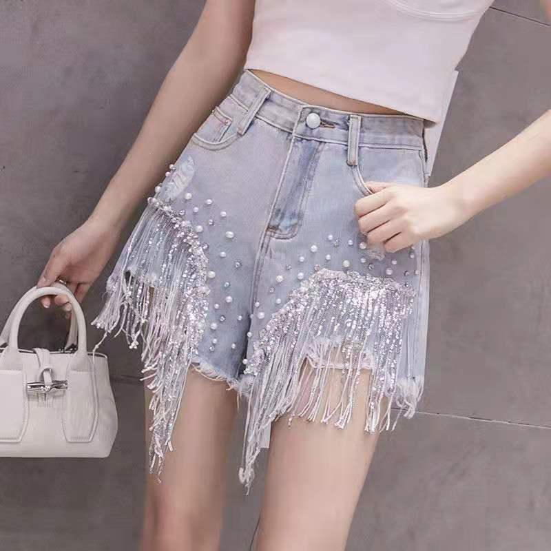 | nameOriginal | 2024 Spring and Summer New Distinctive Denim Shorts Women's Internet Popular High Waist Diamond-encrusted Heavy Industry Sequin Tassel Denim Hot Pants Trendy |