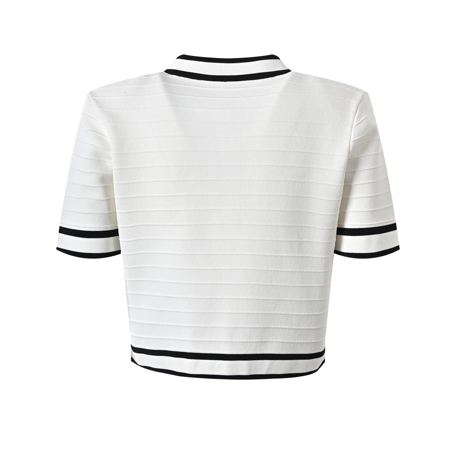 | nameOriginal | 2024 spring and summer new elegant gentle style contrast color round neck metal buckle Ice Silk short sleeve fashion commuter all-match top |