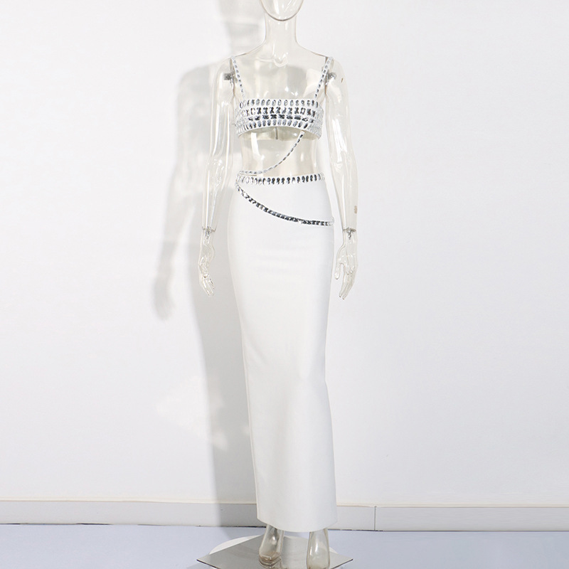 | nameOriginal | 2024 Spring and Summer New Fashion Sexy Heavy Industry Diamond Design Sling Top Bandage Hip Skirt Two-piece Set |