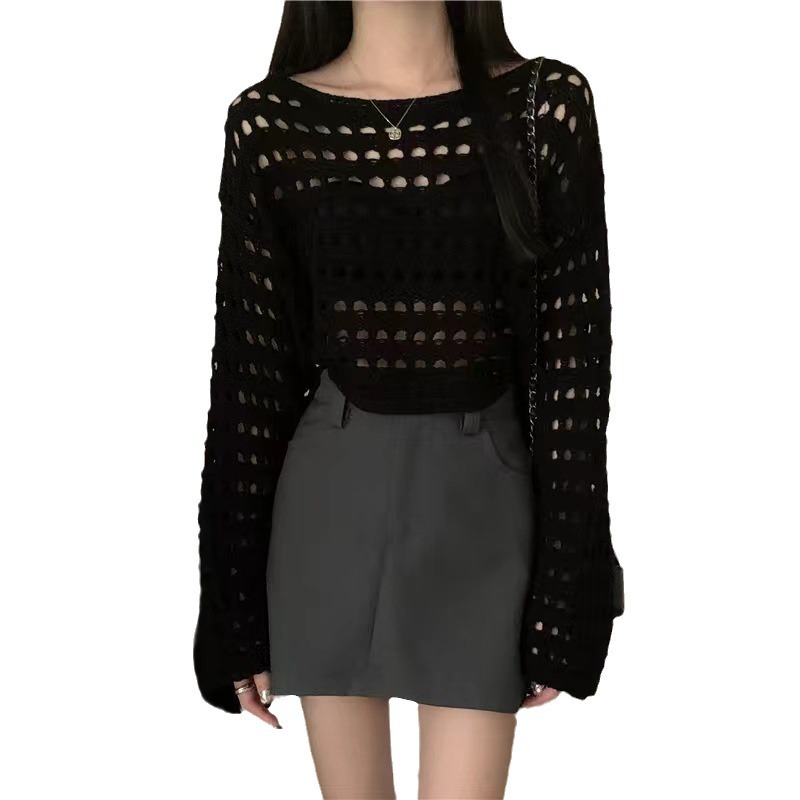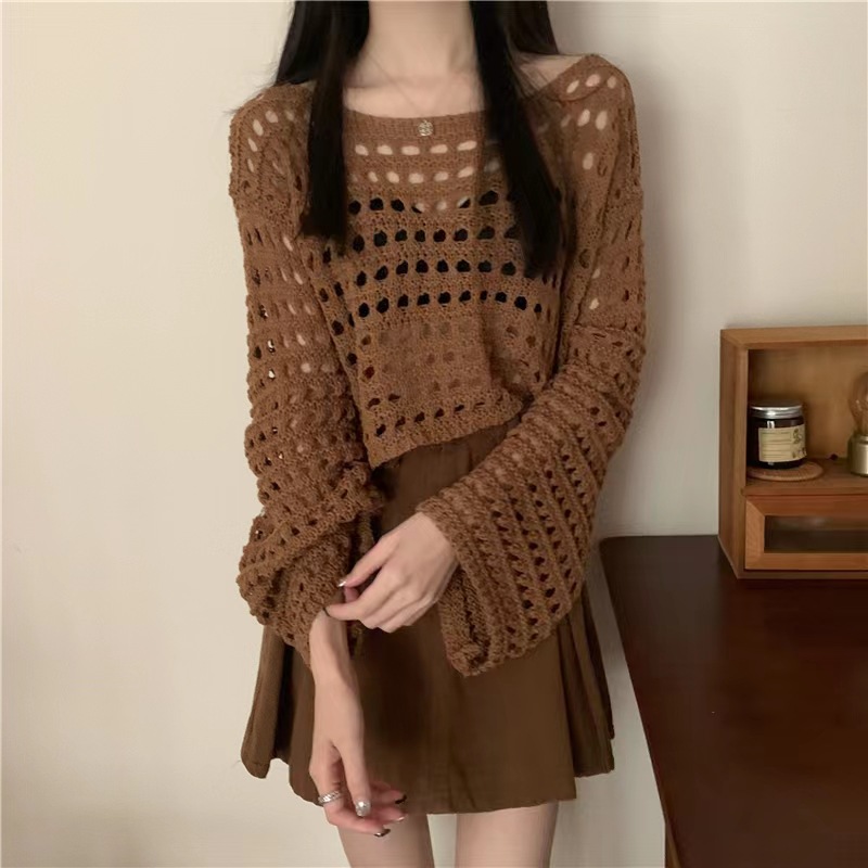 | nameOriginal | 2024 Spring and Summer New French Short Long-sleeved Hollow Knitted Sweater Women's Design Sense Thin Sunscreen Blouse Top |