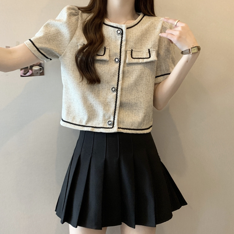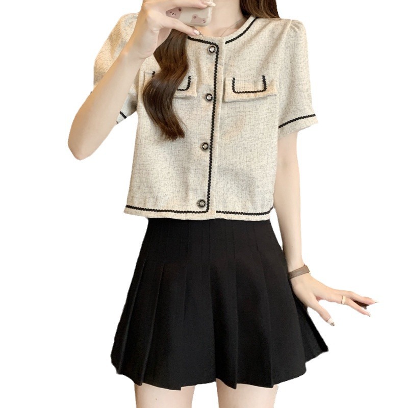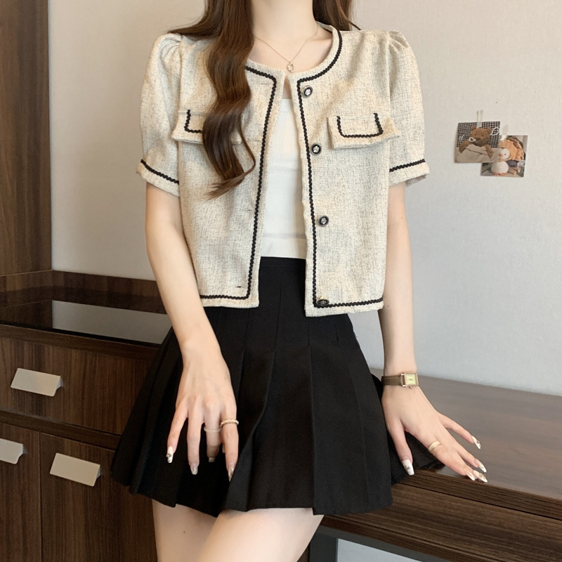 | nameOriginal | 2024 Spring and Summer New High-end Light Luxury Round Neck Chanel Style Short-sleeved Jacket Women's Small Thin Suit Top |