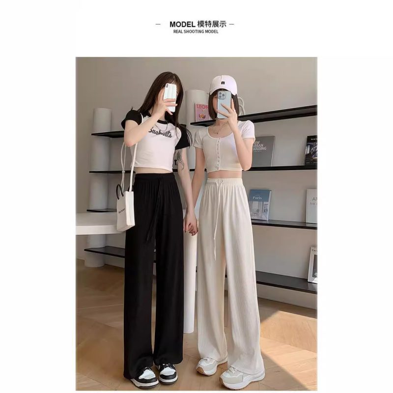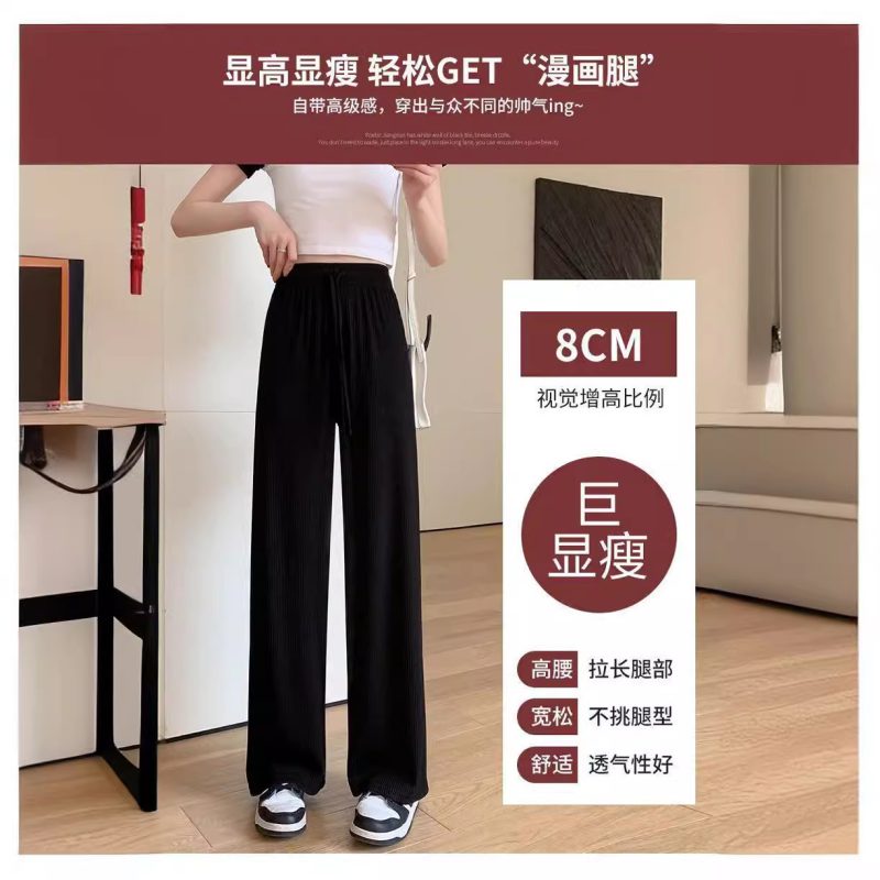 nameOriginal | 2024 spring and summer new ice silk thread wide-leg pants solid color high waist cropped pants no pocket casual suit pants |