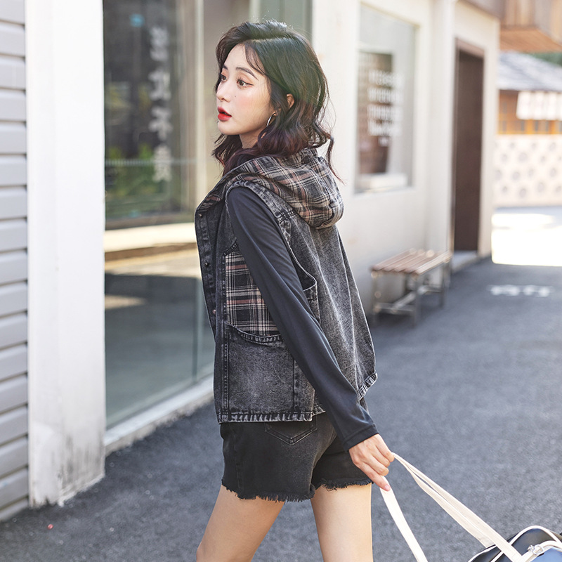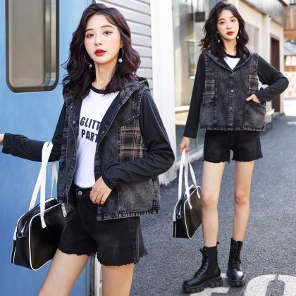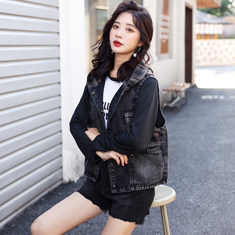 | nameOriginal | 2024 Spring and Summer New Korean Style Loose Large Size Stitching Plaid Hooded Denim Waistcoat Women's Vest |