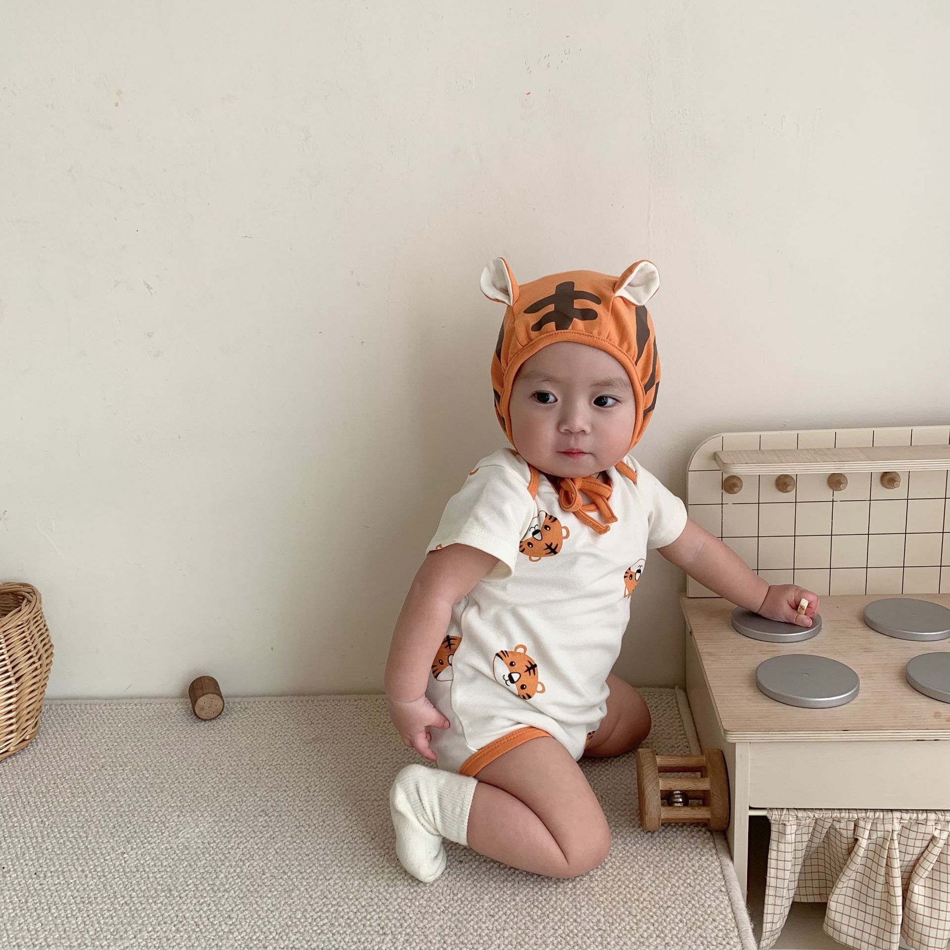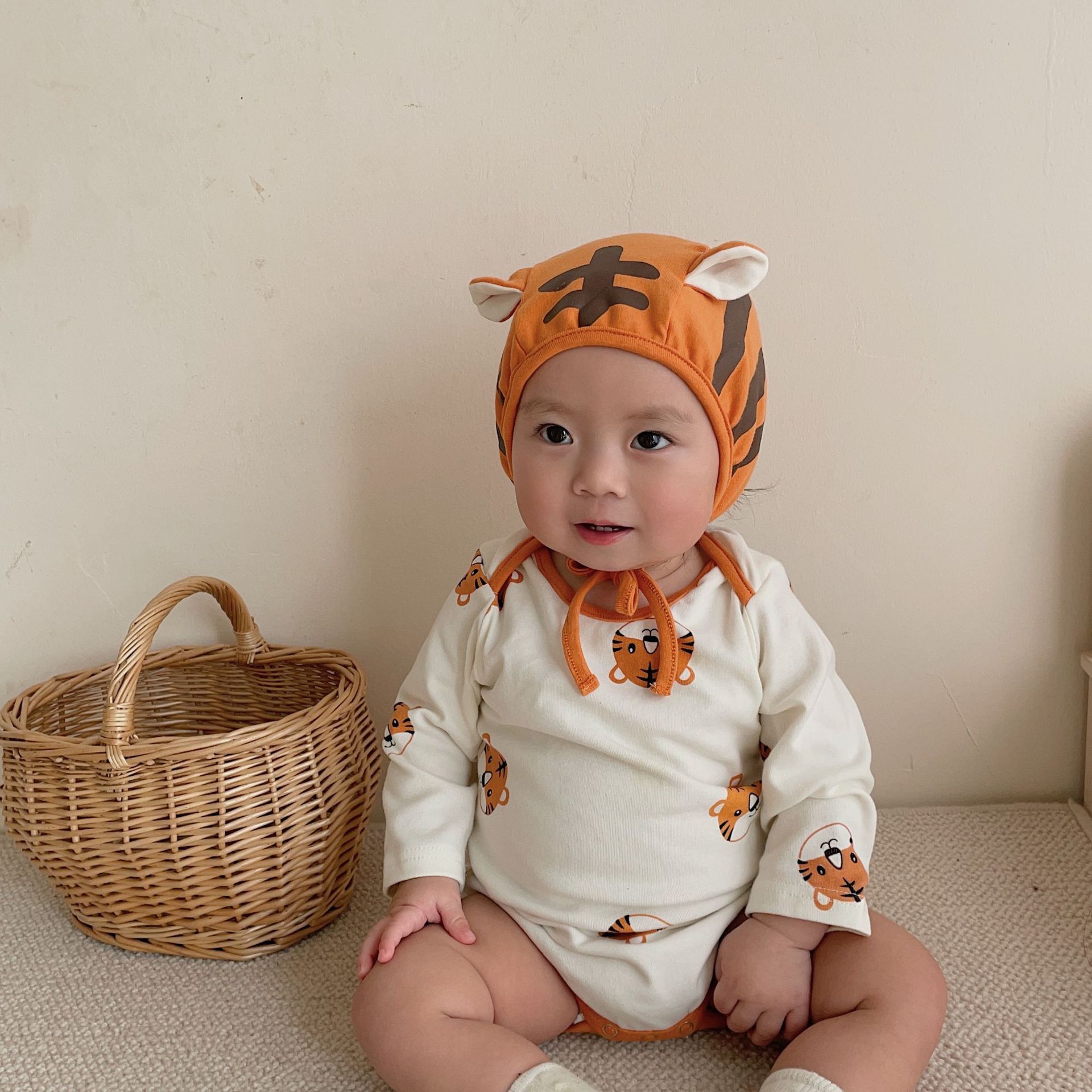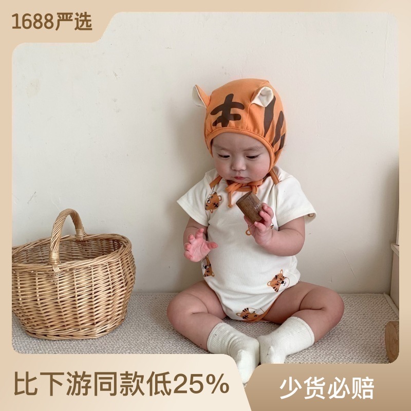 2024 spring and summer new Korean style romper ins style baby jumpsuit suit cute little tiger printed sheath