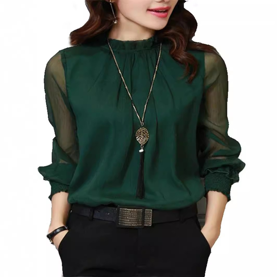| nameOriginal | 2024 Spring and Summer New Lace Chiffon Shirt plus size Women's Mesh Ruffled Long Sleeve Base Shirt Top Shirt |