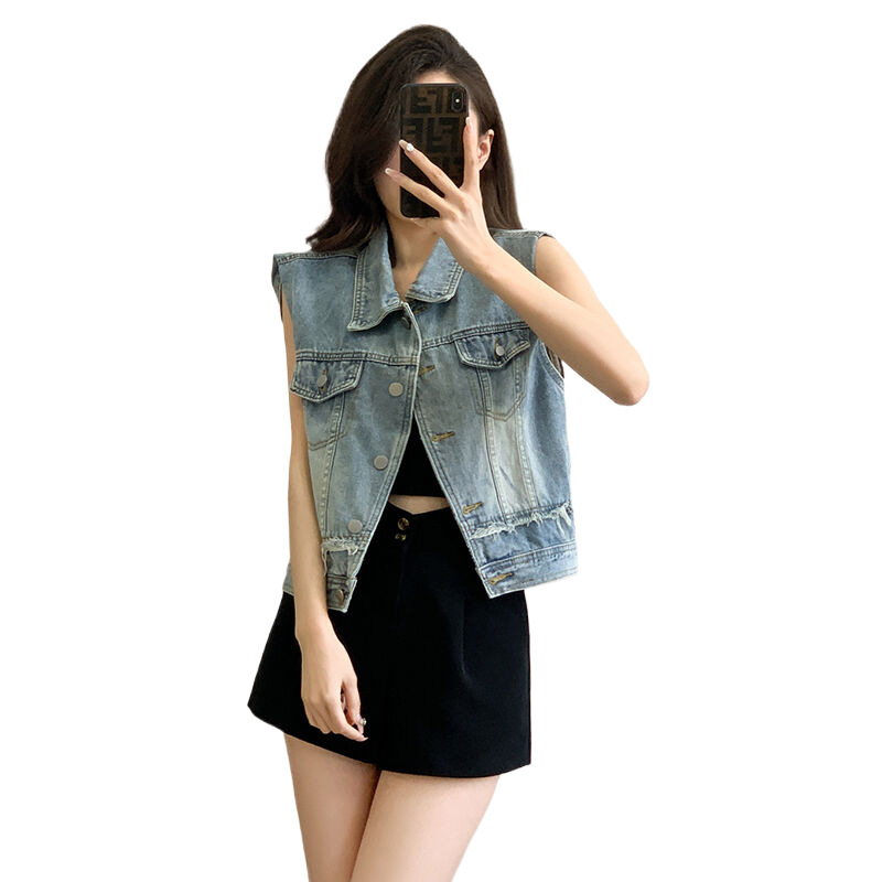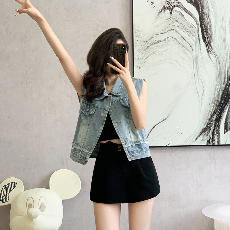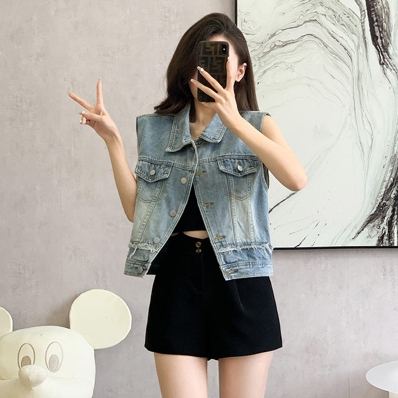 2024 spring and summer new light blue Denim vest retro versatile slimming stacked top