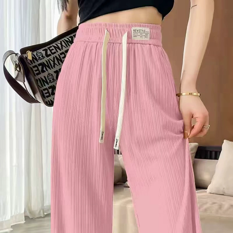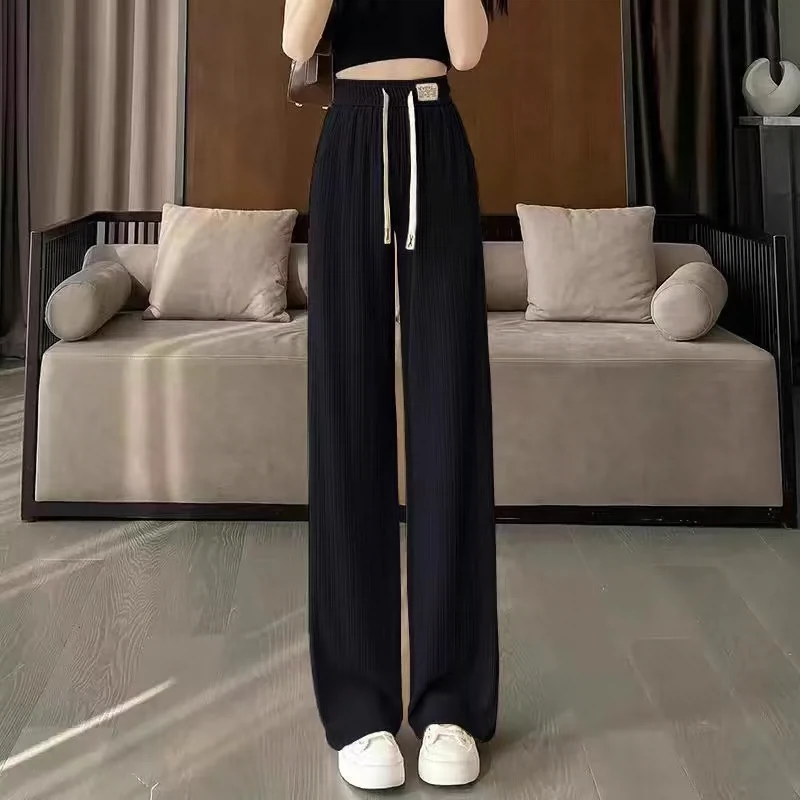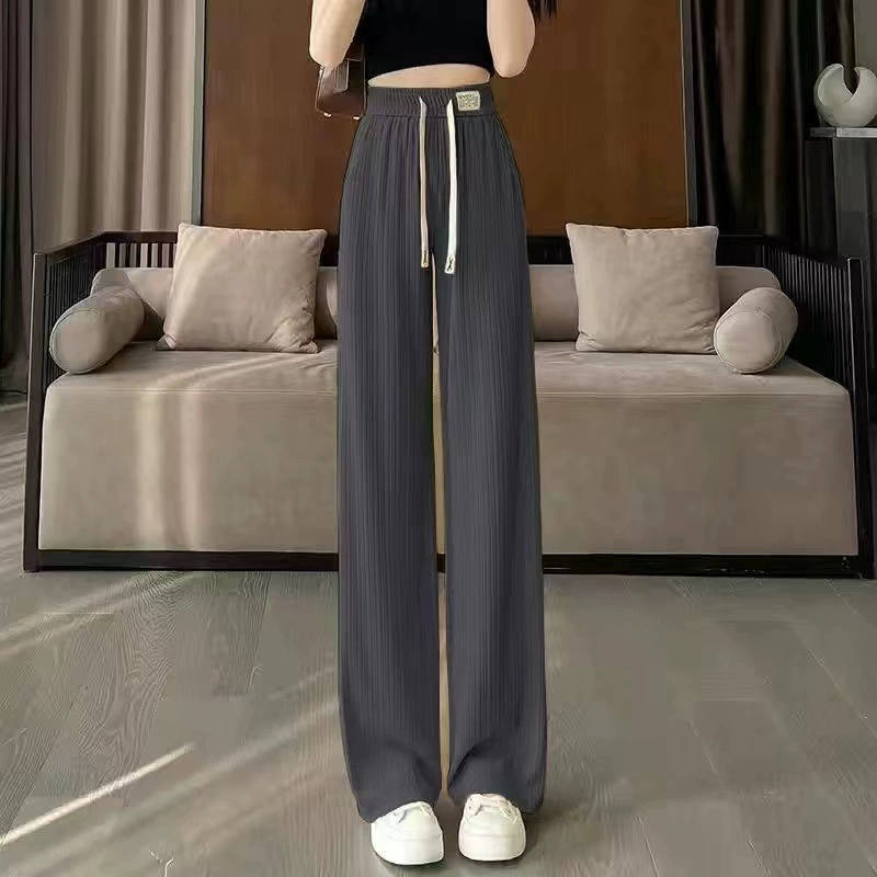 2024 Spring and Summer New Pants Women's High Waist Drape Loose Straight Sports Leisure Pants Ice Silk Wide Leg Pants Narrow Version