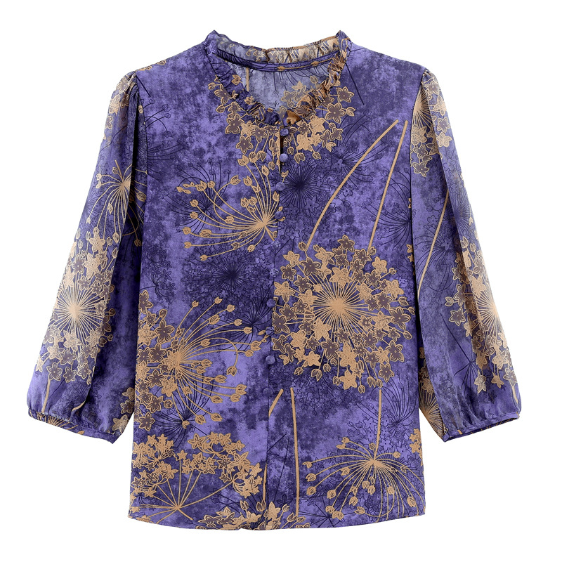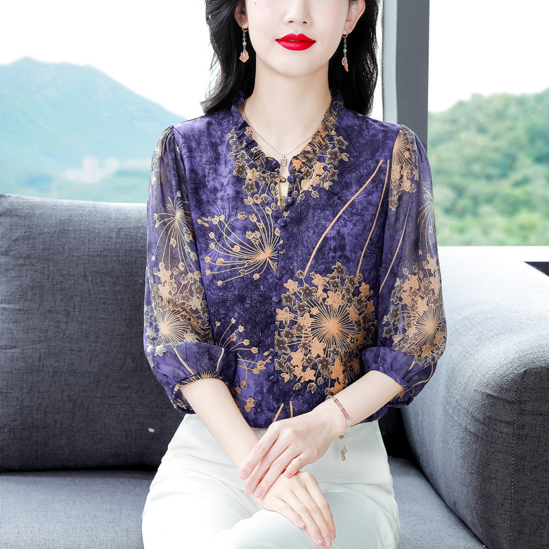| nameOriginal | 2024 Spring and Summer New Printed Chiffon Shirt Middle-aged Mother's Western Style Floral Small Shirt Slim-fit Seven-point Sleeve Top |