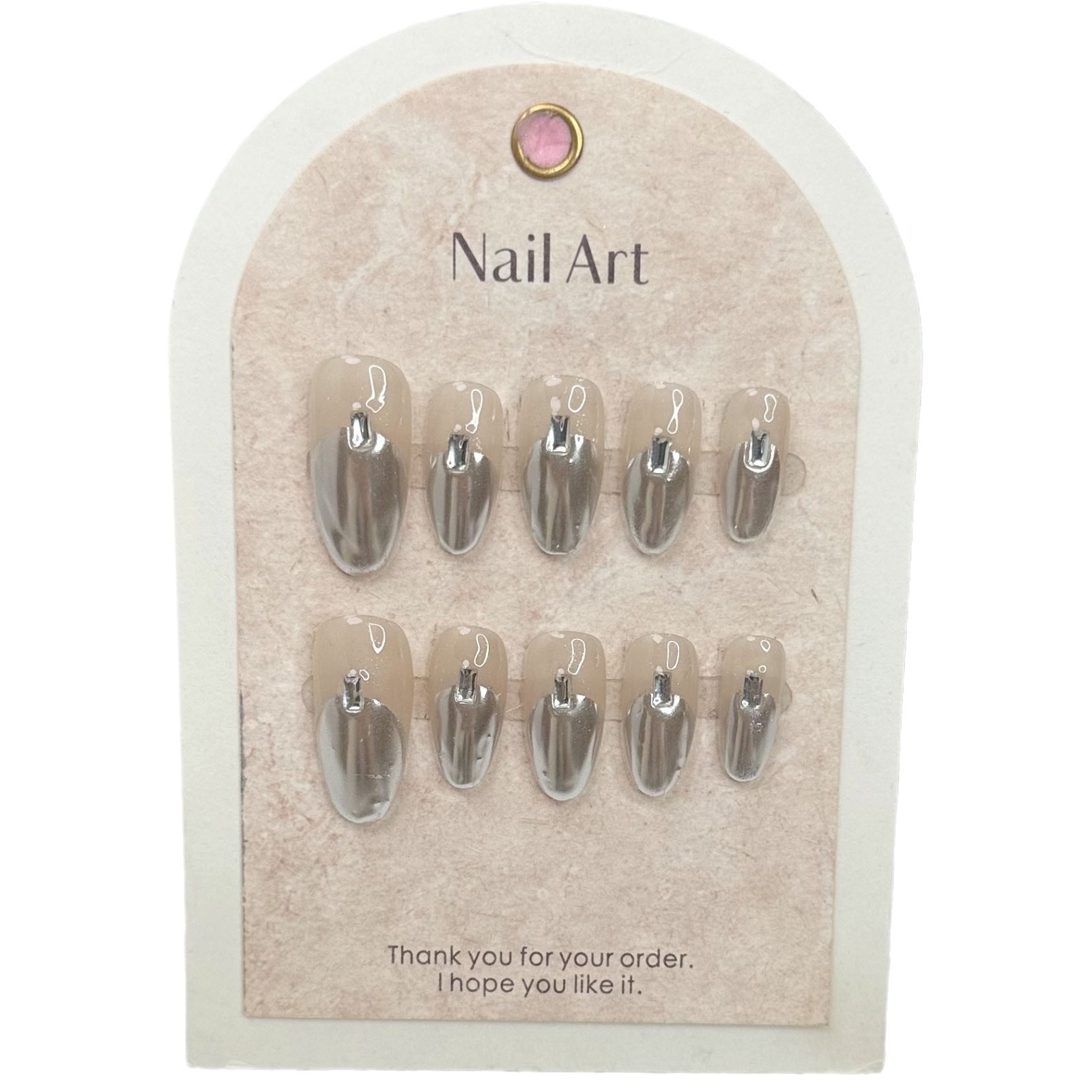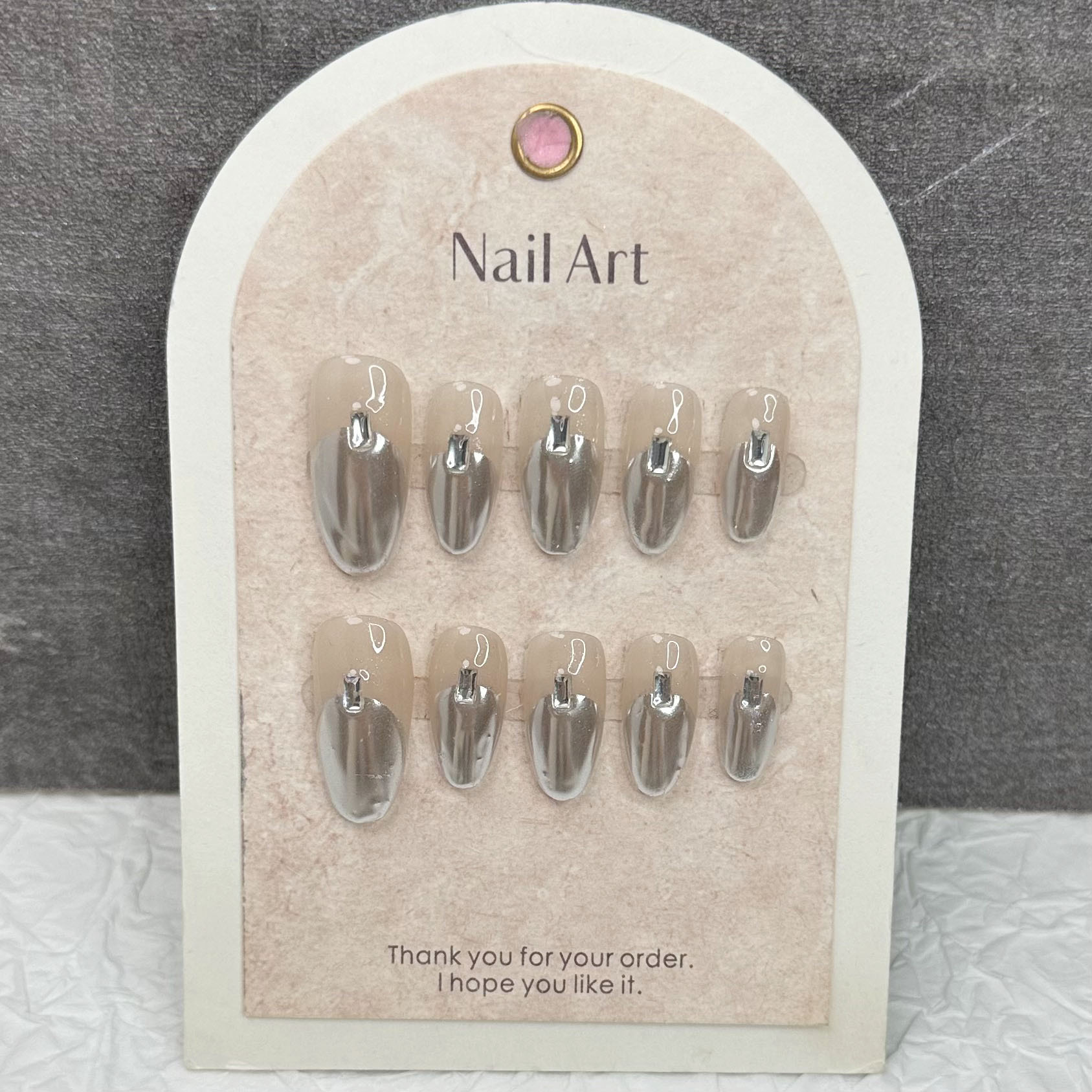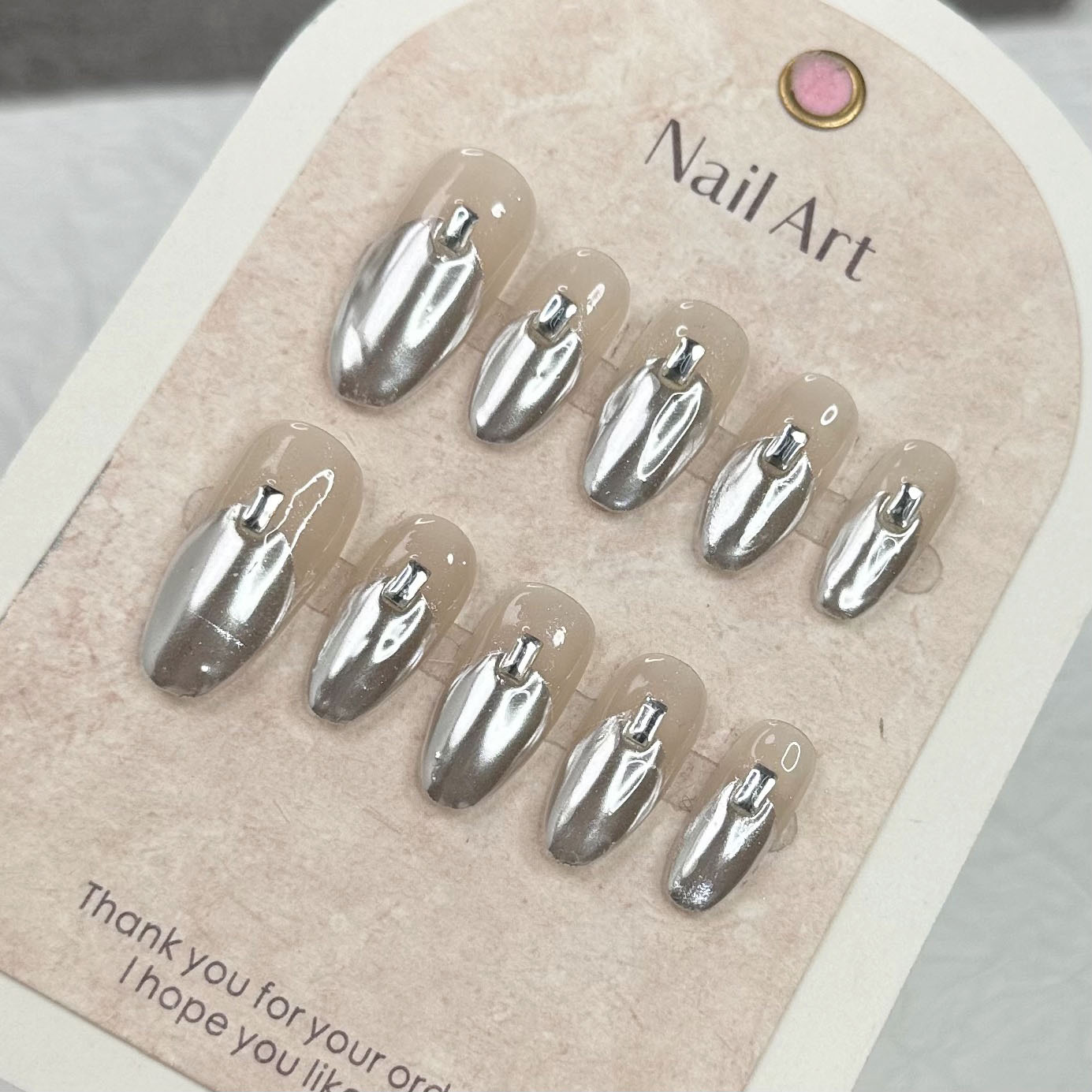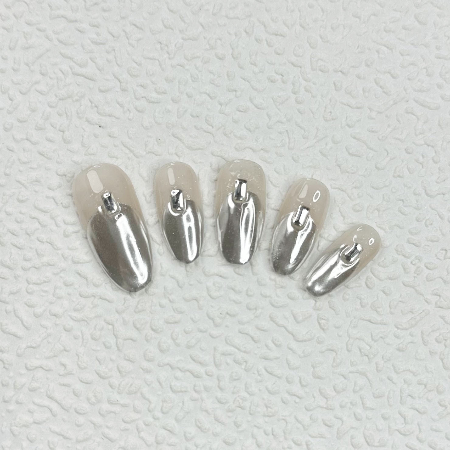 2024 Spring and Summer New Pure Hand-worn Armor Silver White Sticker Diamond Advanced Three-dimensional Hand-painted Removable Finished Nail Art