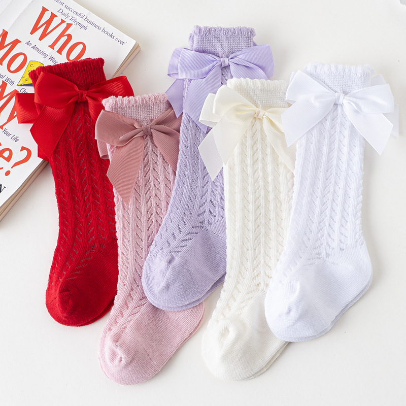 | nameOriginal | 2024 spring and summer new rib knot hollow breathable mesh baby knee-length mid-calf length socks Red Girl Princess socks |