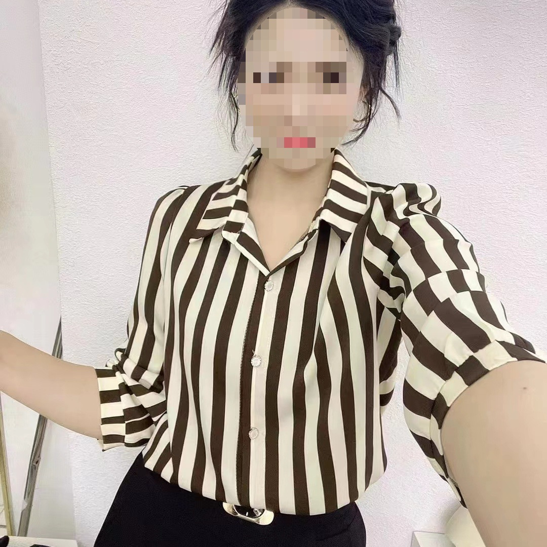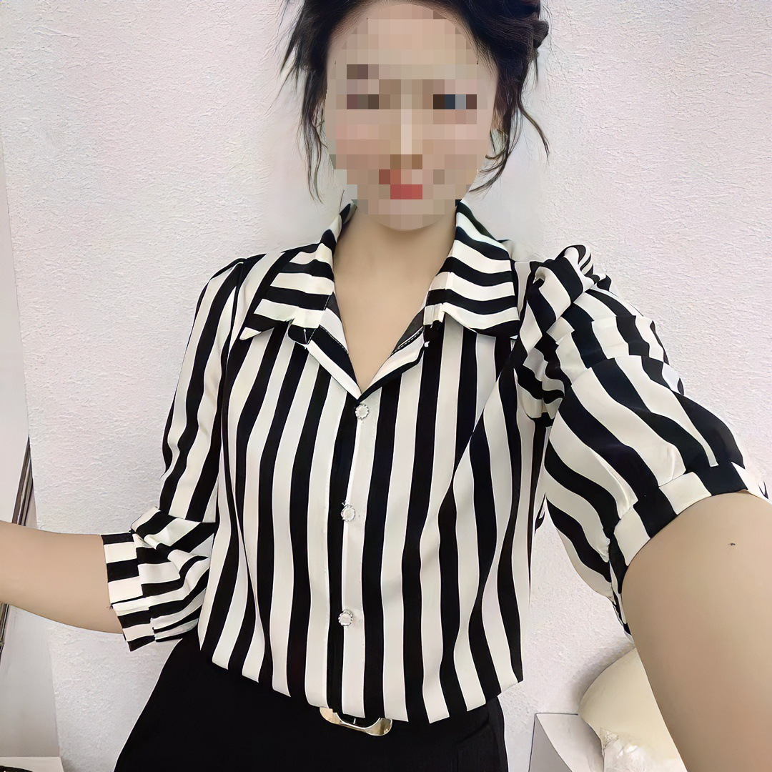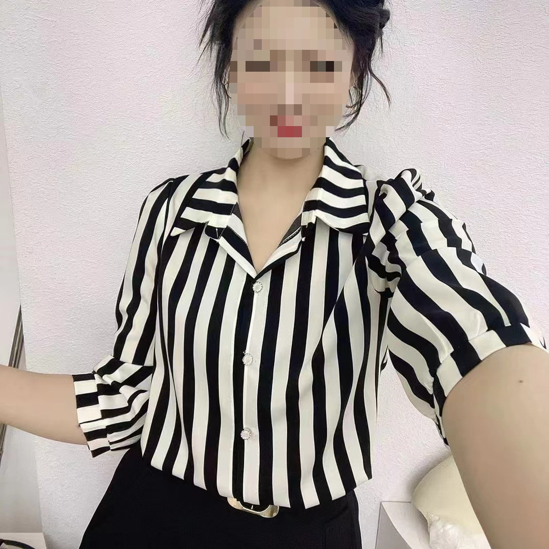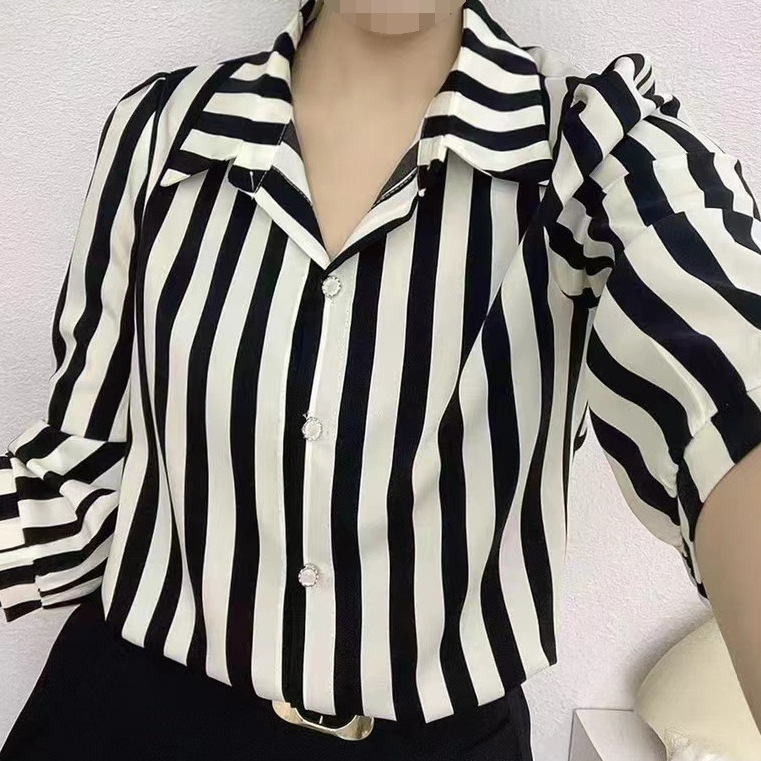 | nameOriginal | 2024 Spring and Summer New Seven-Sleeve Striped Slim Shirt Women's Styish All-Match Design Striped Elegant Shirt |