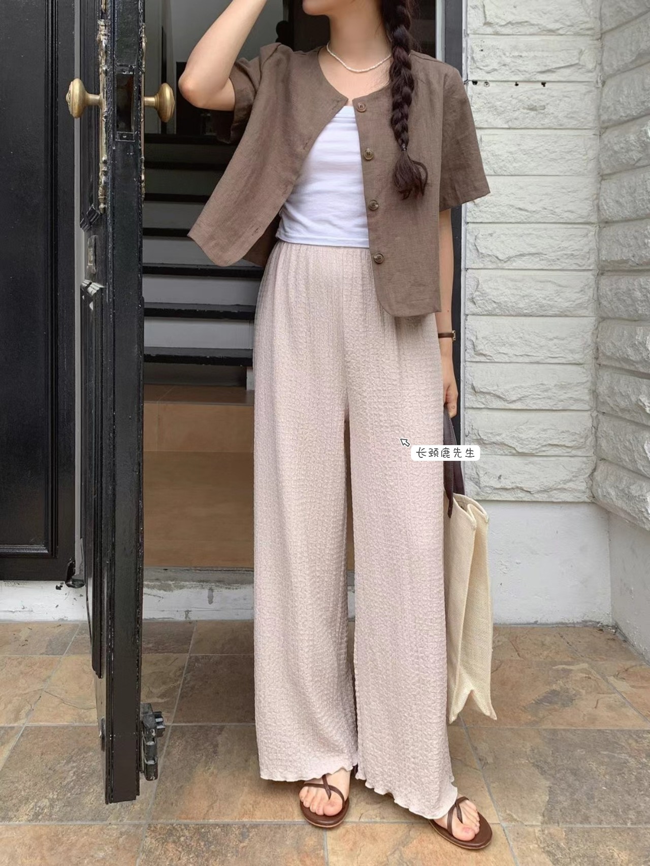 | nameOriginal | 2024 spring and summer new style direct mail from Dongdaemun, South Korea brandmarket elastic waist textured straight pants |
