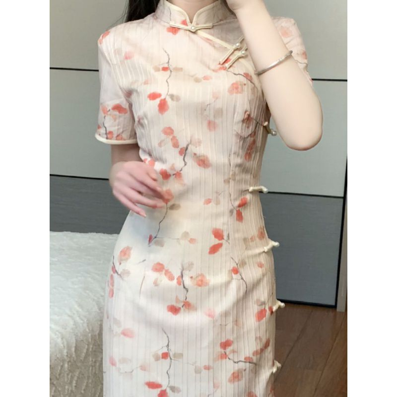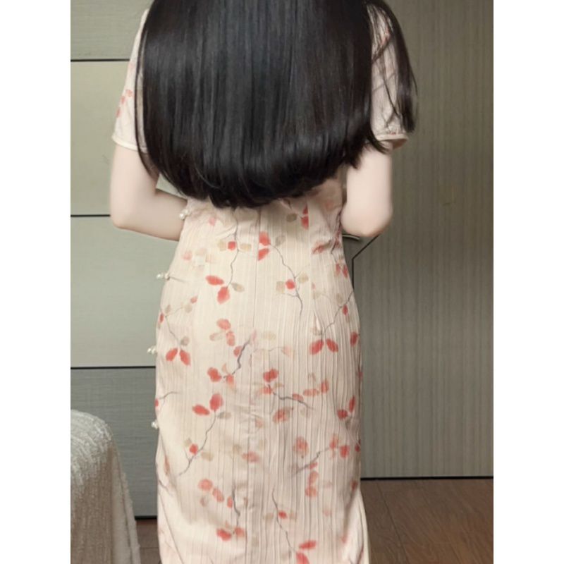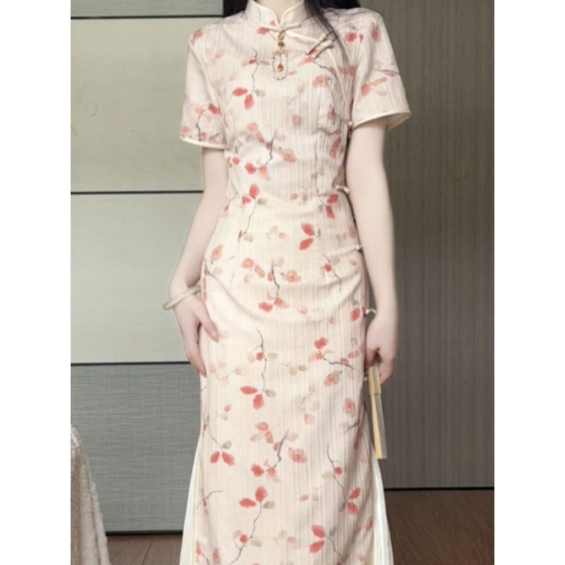 | nameOriginal | 2024 Spring and Summer New Vintage Improved Cheongsam New Chinese Short-sleeved Pink Side Eight-button Long Dress for dress Women |
