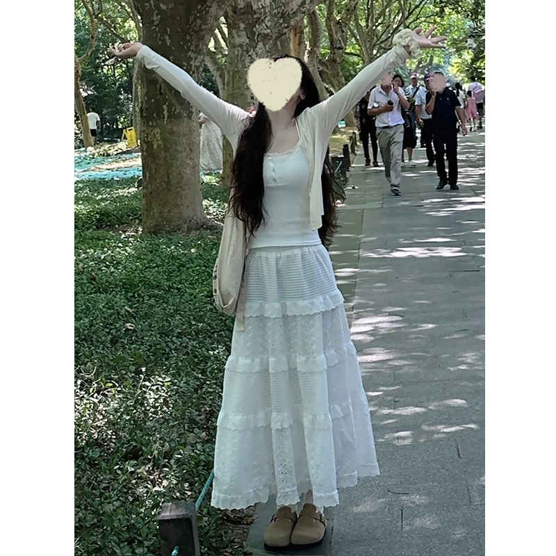 | nameOriginal | 2024 Spring and Summer New White Skirt Women's High Waist Slimming Cake Skirt Pear Shape Long Skirt Lace |