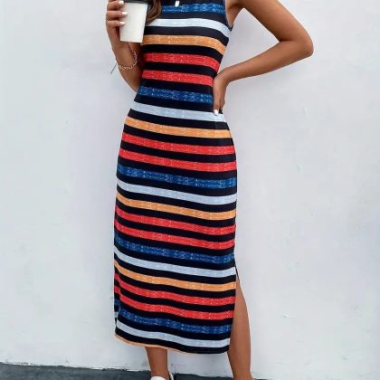| nameOriginal | 2024 spring and summer TEMU Amazon European and American women's cross-border new fashion striped round neck sleeveless dress women |