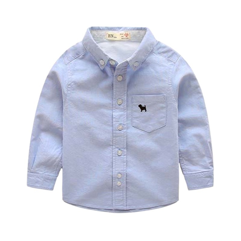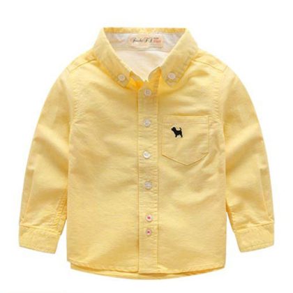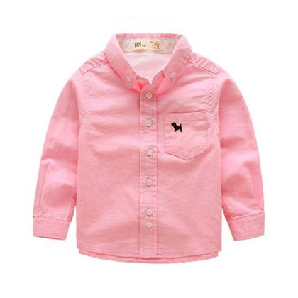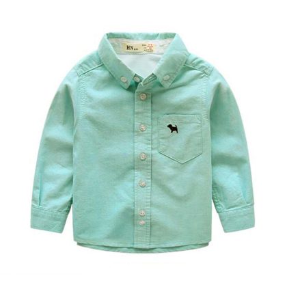 2024 Spring and Summer Thin Children's Wear Korean Style Boys' Shirt Summer Thin Solid Color Printing Long Sleeve Pushuai Fried Street