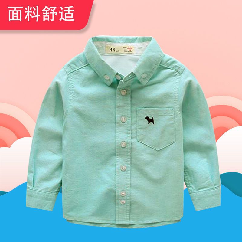 2024 Spring and Summer Thin Children’s Wear Korean Style Boys’ Shirt Summer Thin Solid Color Printing Long Sleeve Pushuai Fried Street