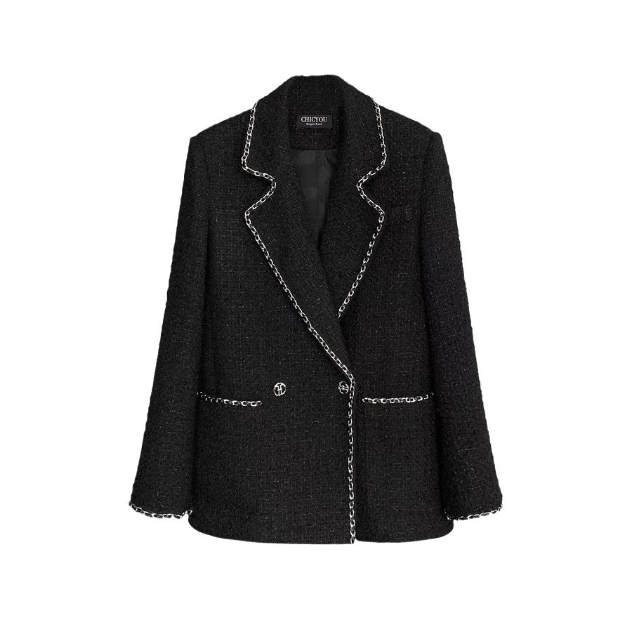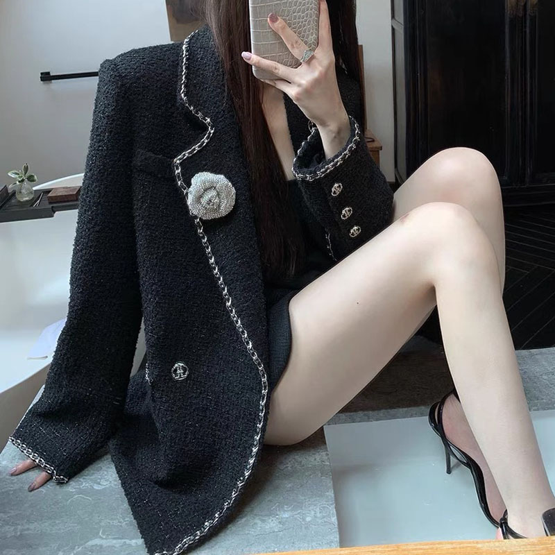 | nameOriginal | 2024 spring and winter New Heavy Industry black chain quilted thickened slimming woolen Chanel style coat coat for women 1652 |