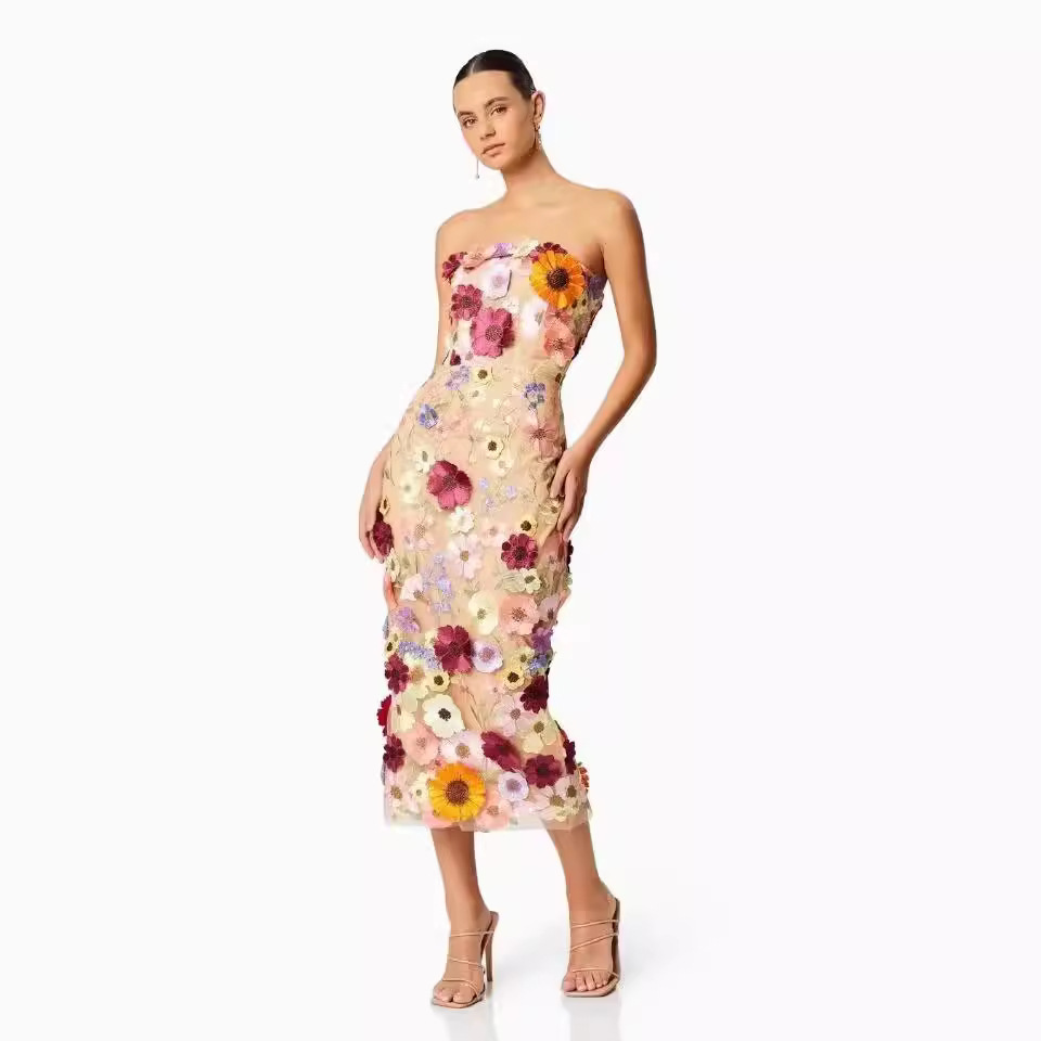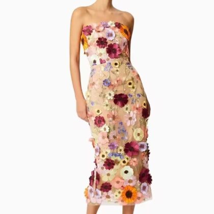 | nameOriginal | 2024 spring European and American sexy sleeveless color three-dimensional flower embroidery slim hip tube dress |