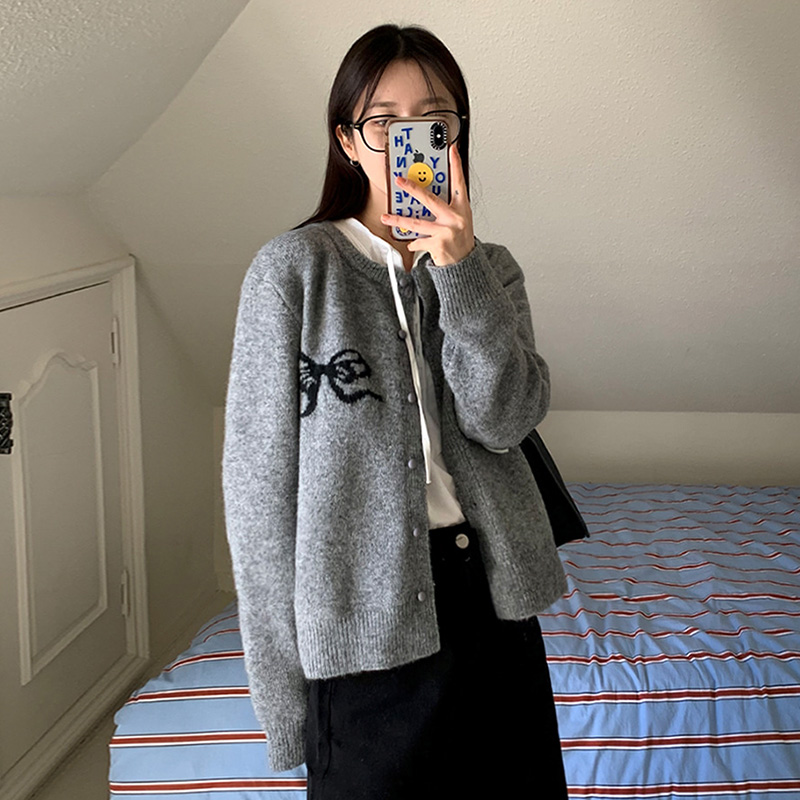 | nameOriginal | 2024 spring new bow jacquard design knitted cardigan sweater top |