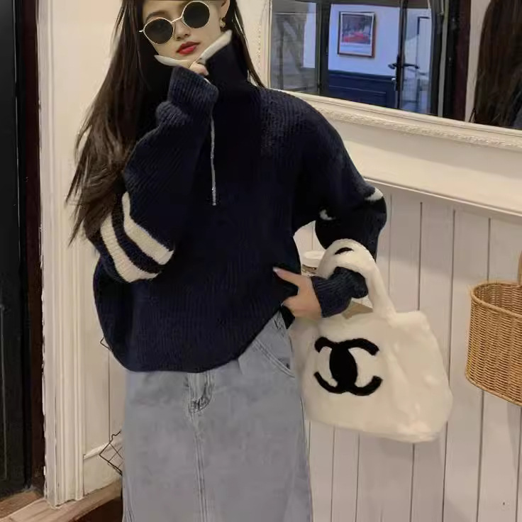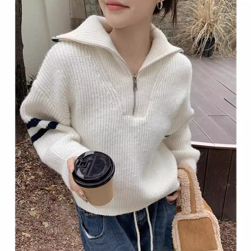 | nameOriginal | 2024 spring new casual sweater top women's slim-fit short pullover half zipper lapel sweater |