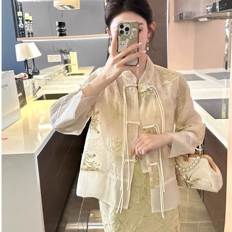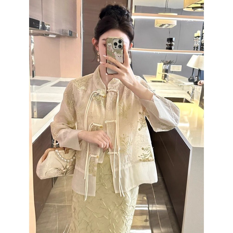 | nameOriginal | 2024 Spring New Chinese Style Guofeng Heavy Industry Embroidered Button Shirt Sense Light Luxury Micro-transparent Top Two-piece Suit for Women |