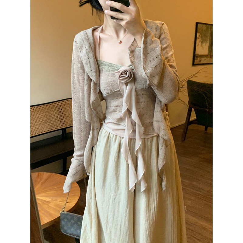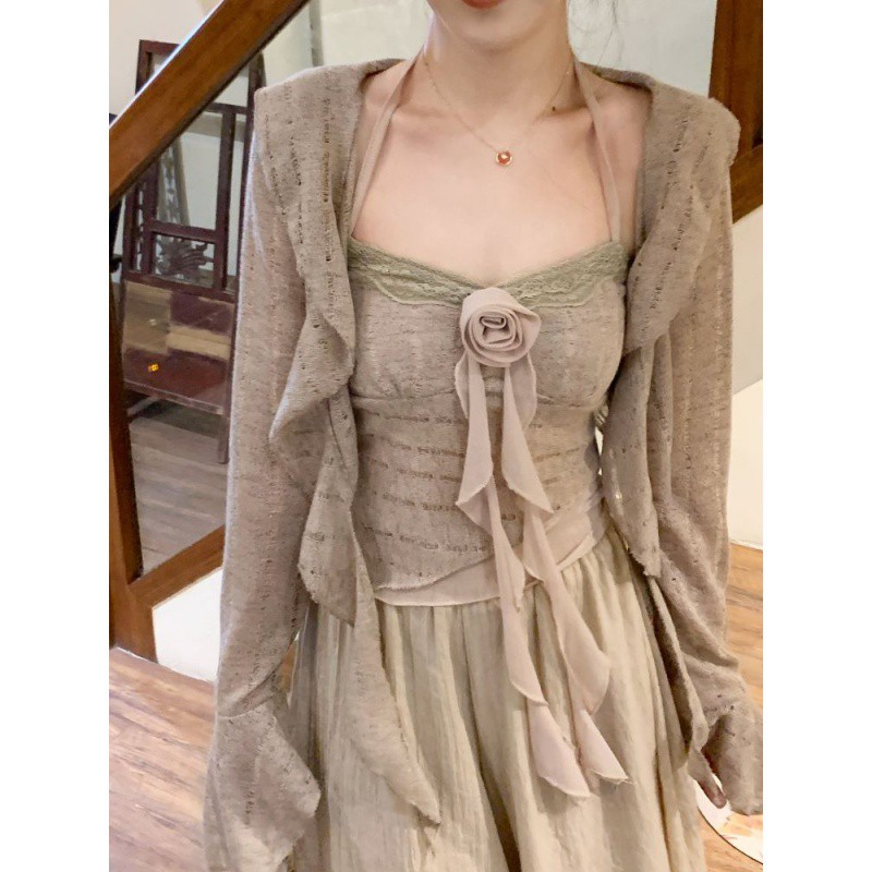 | nameOriginal | 2024 Spring New Chinese Zen Style Women's Wear Ruffled Outer Cardigan Design Sense Inner Sling Halter Top |