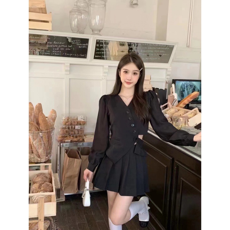 | nameOriginal | 2024 spring new collar irregular design top high waist pleated skirt fashion two-piece set |
