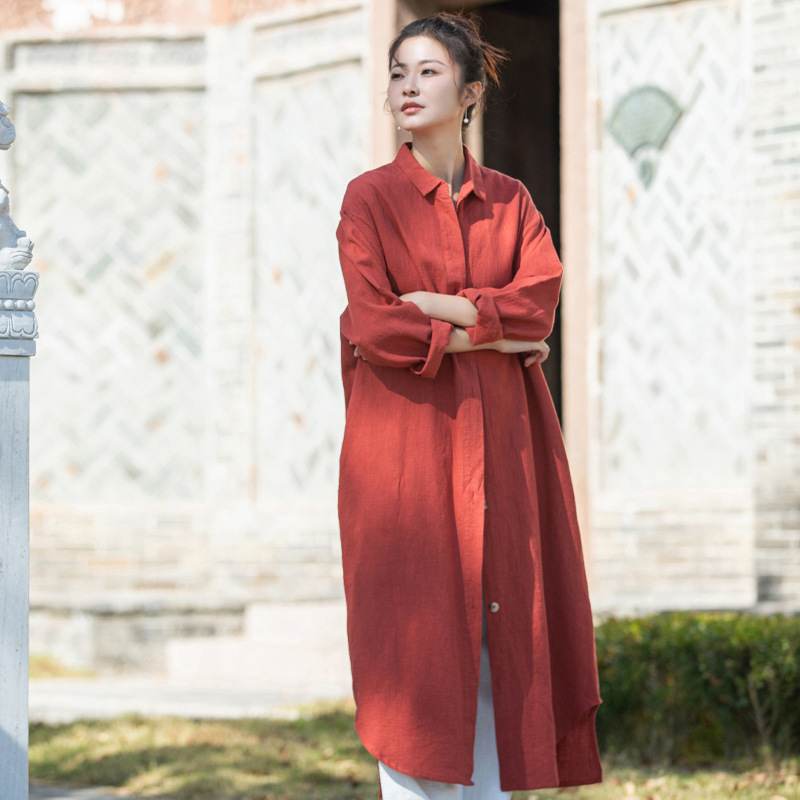 | nameOriginal | 2024 Spring New Cotton and Linen Women's Artistic Linen Sand Wash Lapel Long Coat Women's Loose Slimming Outer Cardigan |