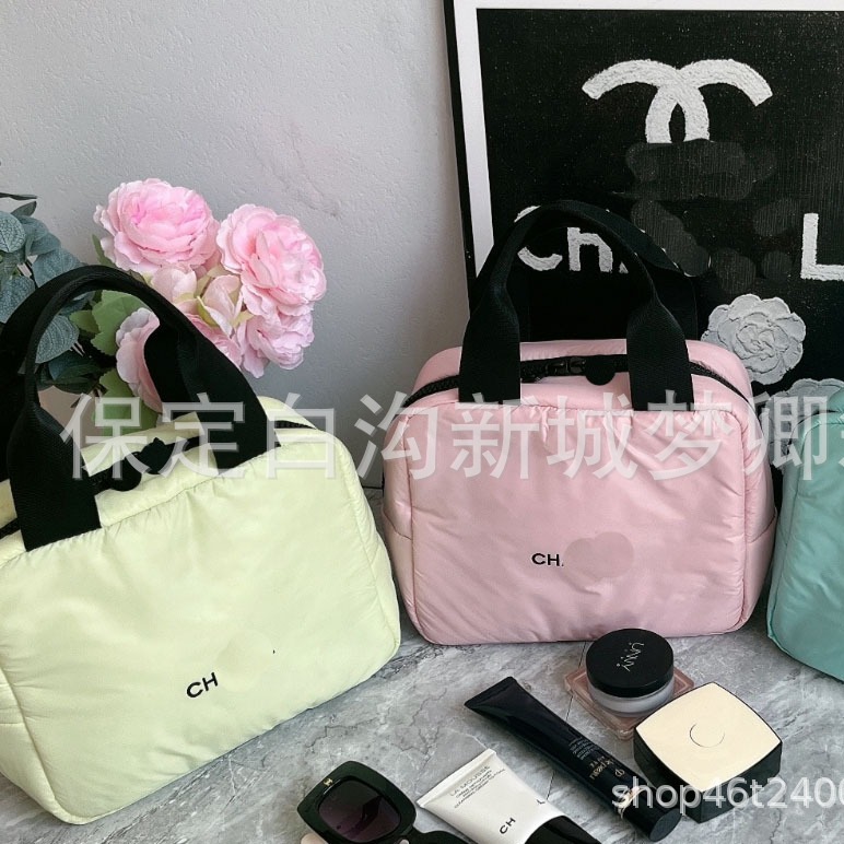 | nameOriginal | 2024 Spring New Dopamine Color Pearl White Cloud Portable Cosmetic Bag Chanel Down Cotton Handbag |