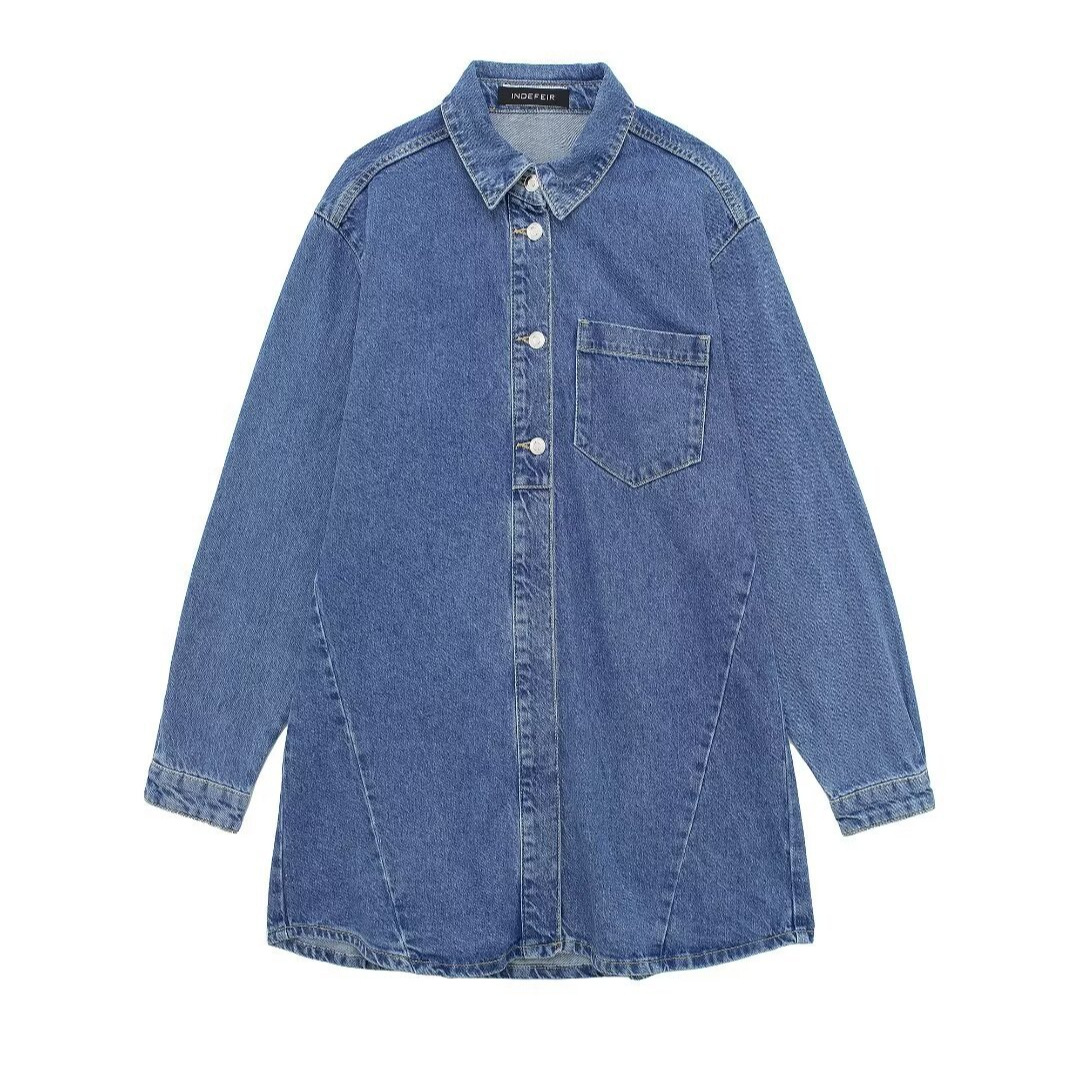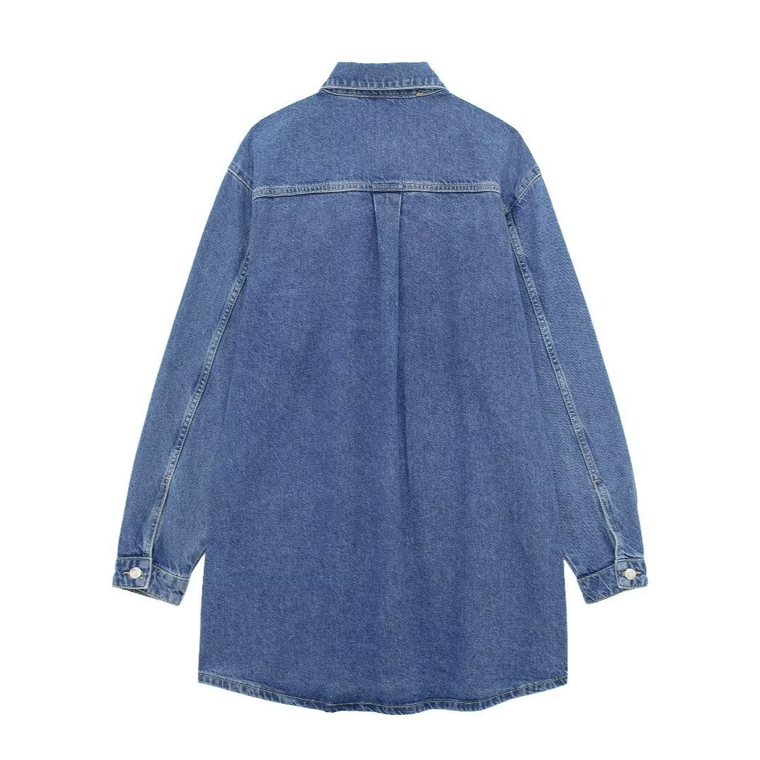 2024 Spring New European and American Cross-border Women's Street Fashion Long Denim Shirt Jacket w085 96781